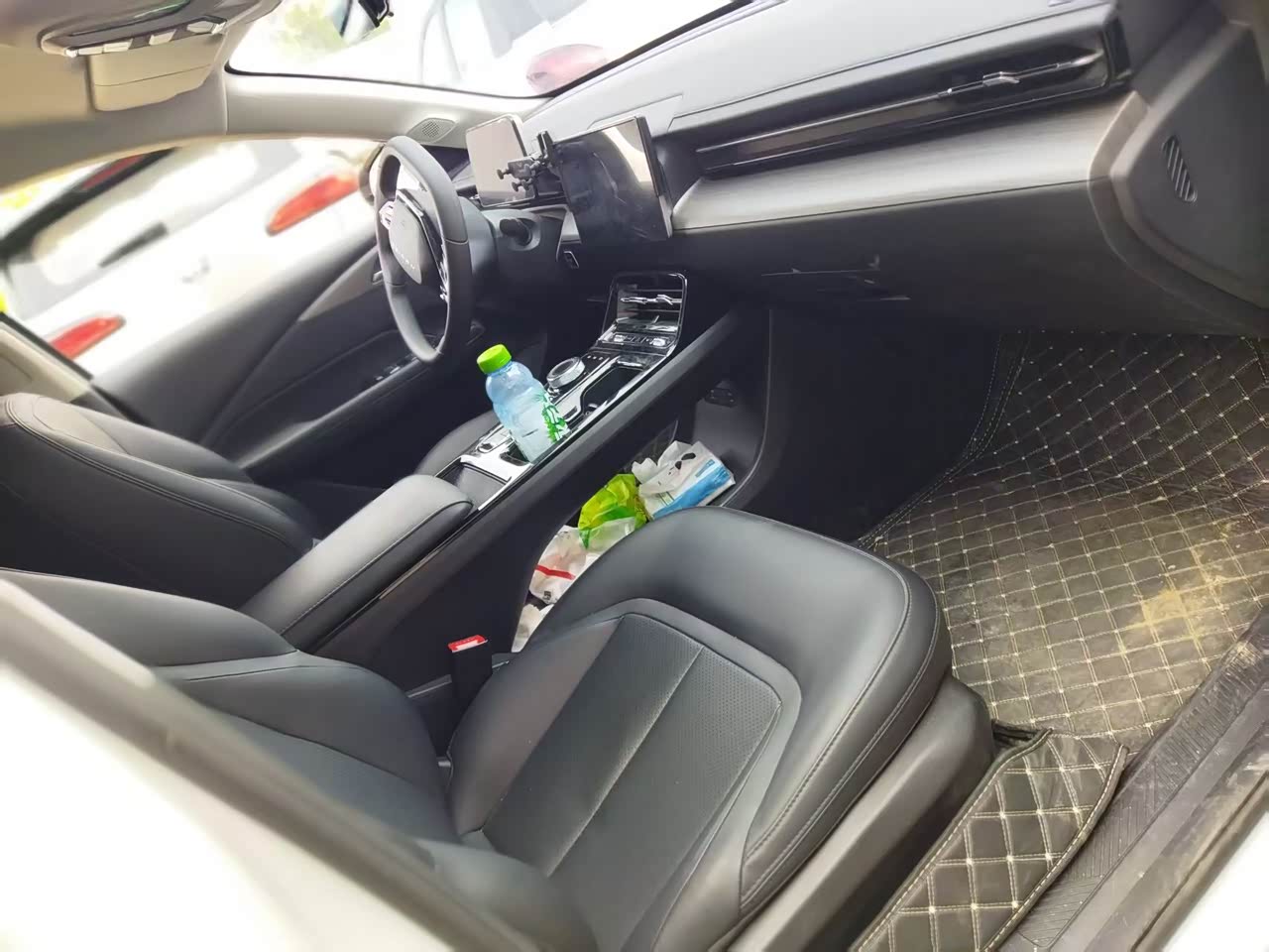 内饰整体的质感还不错,中控台和车门上很多地方都是软质材料包裹,触感挺好。15.6英寸的中控大屏很显眼,显示清晰,操作也流畅,车机系统功能挺丰富,导航、音乐这些常用功能都有,还支持语音控制,开车的时候用起来很方便。