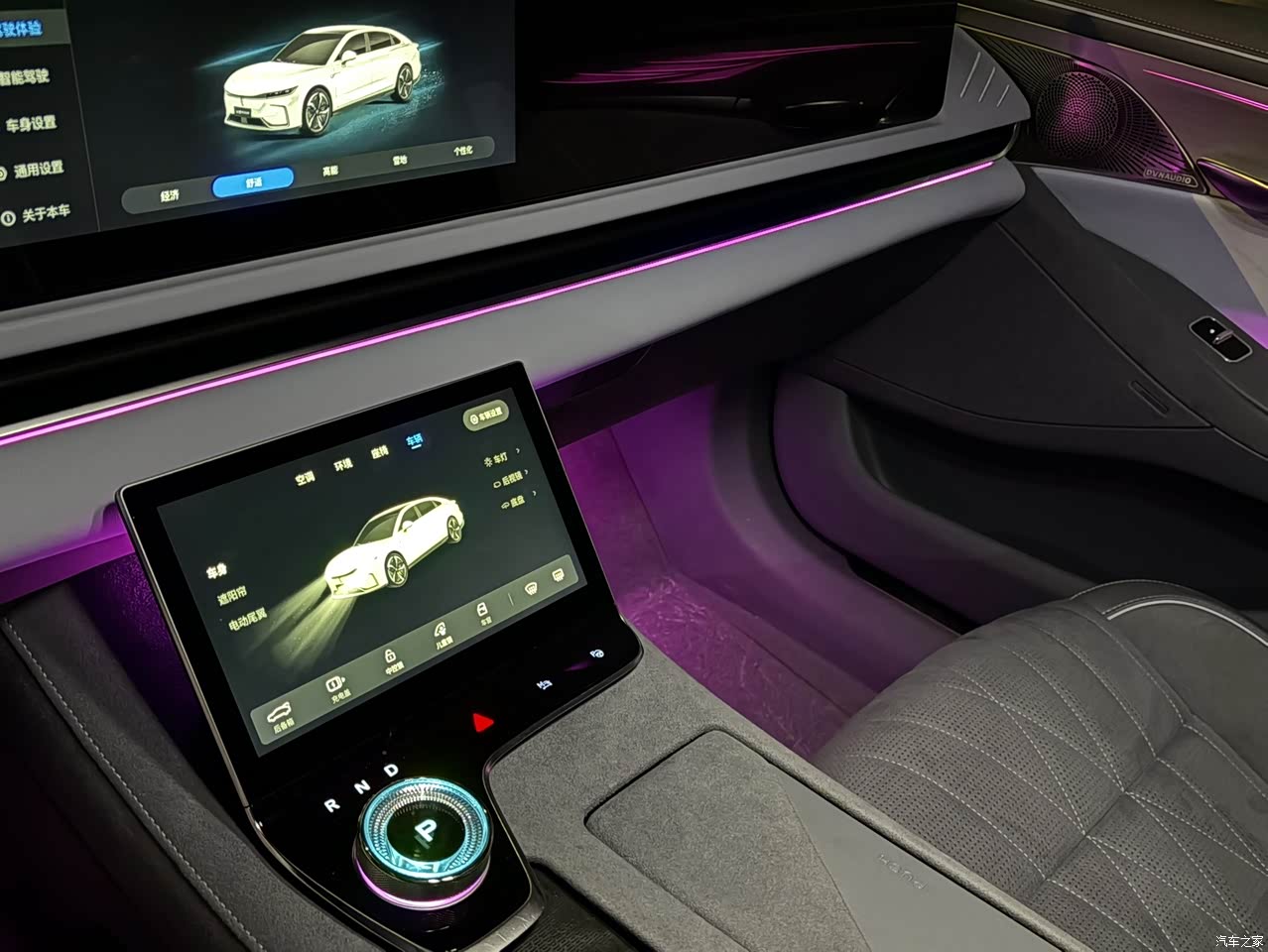 内饰很好,没有什么异味儿,全车都是翻毛皮材质,很舒服,氛围灯什么的也应有尽有。四座都有座椅通风加热按摩,带着家人也可以让他们体验到。前排座椅都可以几乎完全平躺,平时在车里休息一下很舒服。头顶天幕也有遮阳帘,晒的时候可以关闭。各个位置都可以电动调节语音调节,还是很方便的。