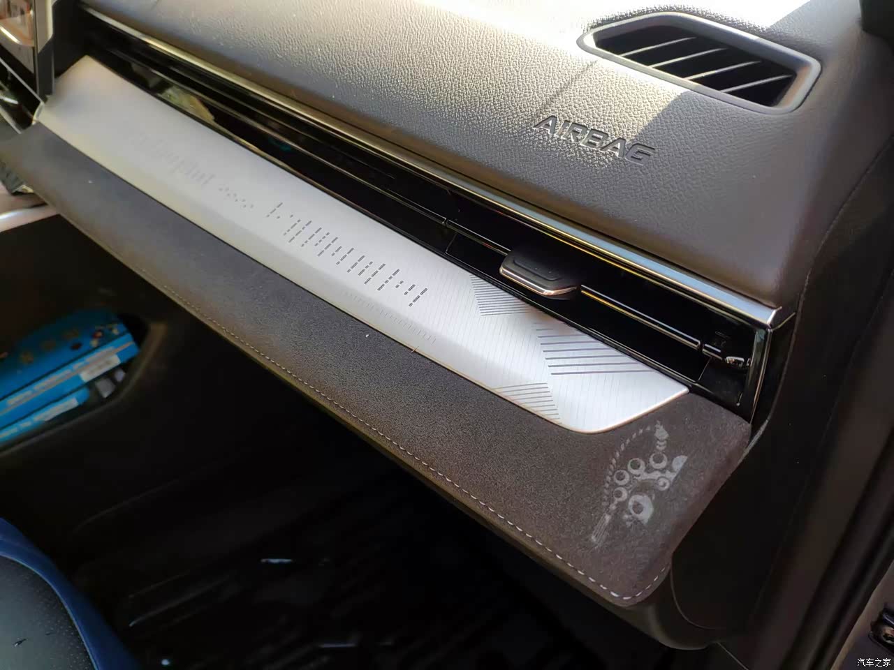 银色的面板、双层的中控台、黑灰色的内饰主颜色,时尚感和精致感都挺不错。材料用了大面积的翻毛皮,触感也是很突出的。还有东方曜系列专属的LOGO看着也很精致。
