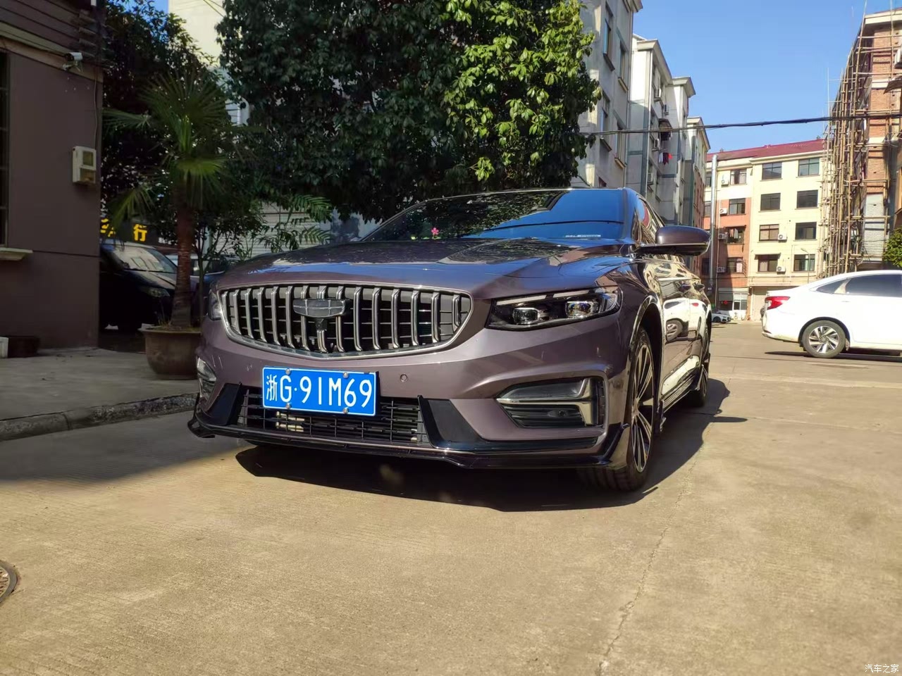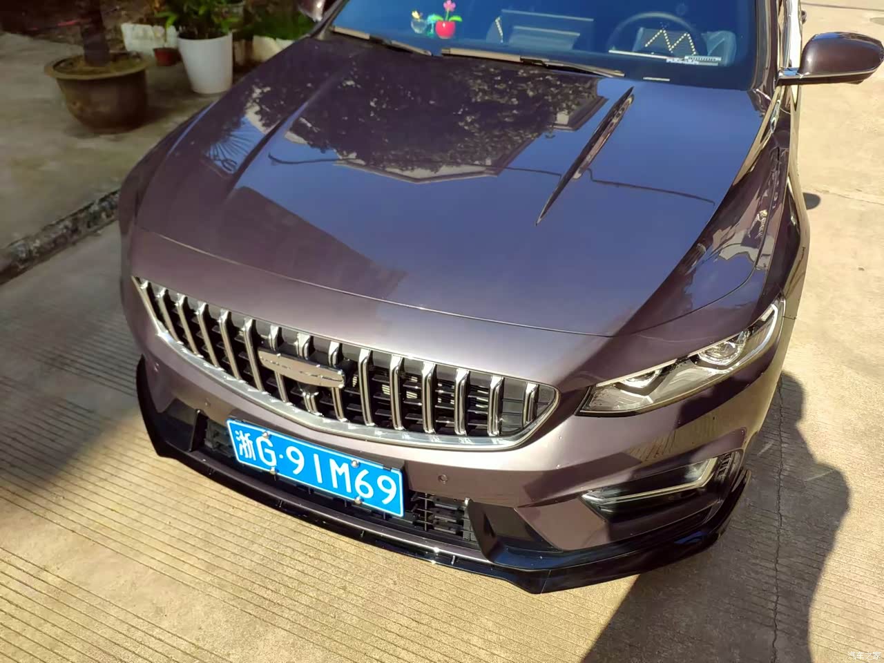 车身线条很流畅有力的,侧面的上下直棱、引擎盖上的四条直棱加上直瀑式的中网银色的车标,颜值是好看时尚的。选择的逍遥紫的车漆在阳光下也特别的出彩。