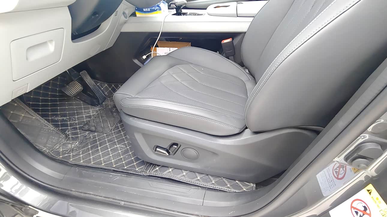车身尺寸为4730mm×1890mm×1680mm,轴距达2795mm。前排座椅调到最低,头部仍有一拳多空间,视野开阔。后排得益于较长轴距,腿部空间充裕,纯平地板设计与28°人体工程学靠背角度,让后排乘客能拥有舒适坐姿,坐三个成年人也不会过于