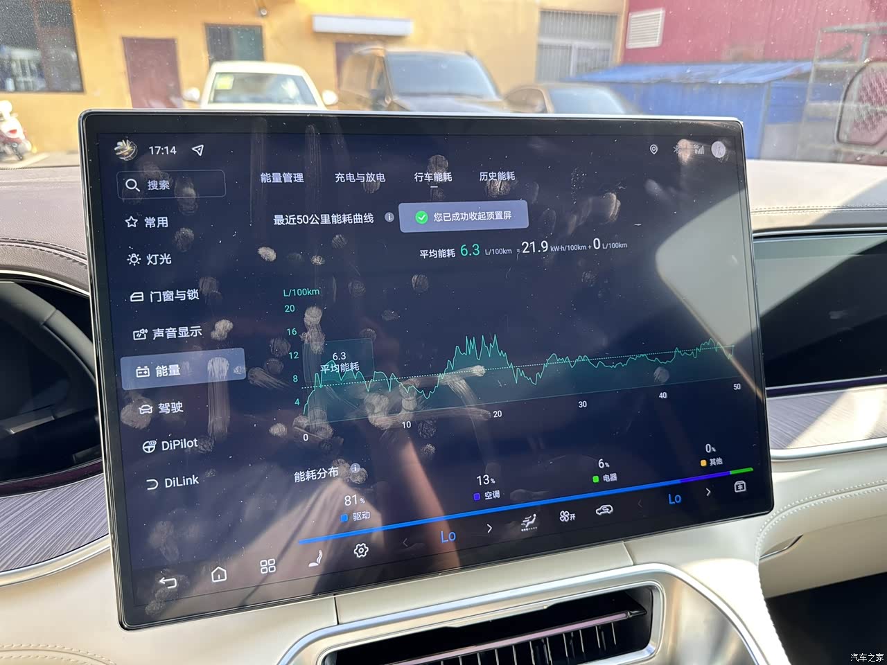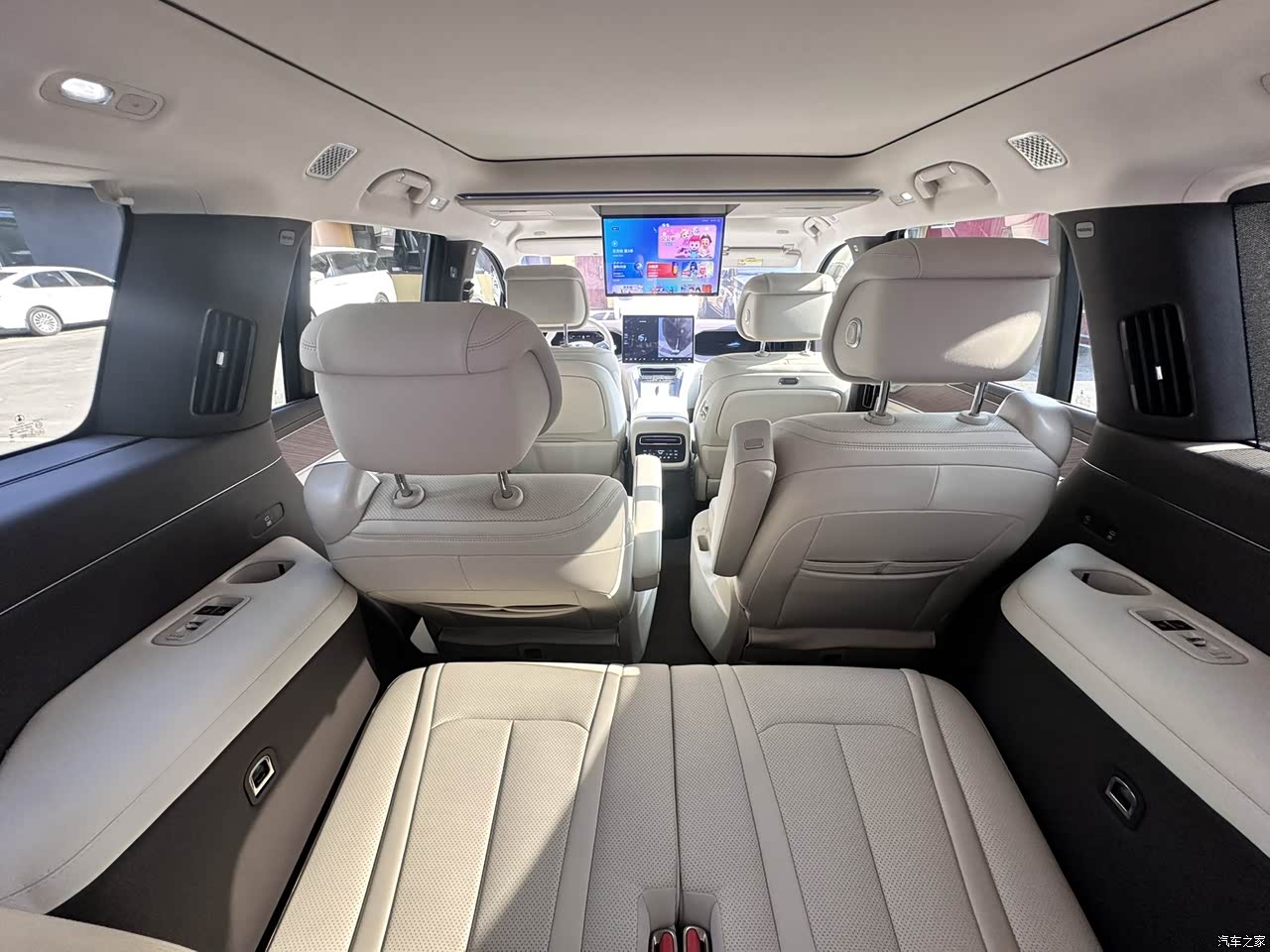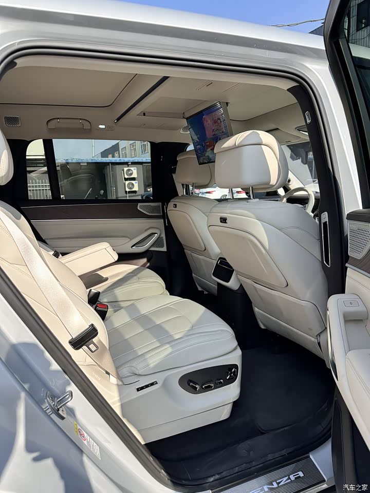 内饰融合豪华与智能,细节处处惊喜。NAPPA真皮座椅带通风按摩,长途驾驶腰不酸;吸顶17.3英寸电视+冷暖箱组合,孩子看动画片、妻子冷藏面膜全搞定。怀挡设计一开始我觉得别扭,但适应后操作流畅,现在开朋友车反而不惯,动不动就给朋友的车开了个雨刷。车内的空间其实核心在于灵活,中排横向移动可以说是非常实用,灵活切换不同场景下的用车模式,并且帝瓦雷音响音质醇厚,流行音乐轻松拿下,改进点是无线充电板发热略明显,还得偶尔拿起来对着空调吹一吹。