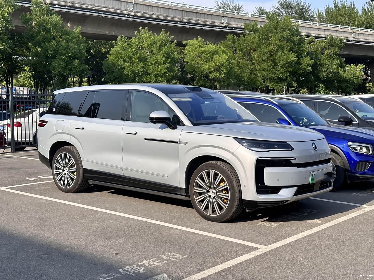 腾势N9的外观设计完美平衡了商务气场与科技美感。初见时,封闭式主动格栅和矩阵LED大灯营造出未来感,却不显浮夸;接待客户时,银白色车漆在阳光下泛出纯净的蓝调,尽显稳重。5.2米车长本易显笨重,但车身线条和隐藏式门把手巧妙削去臃肿感:有一次在海子边窄路停车,22寸轮毂搭配明黄卡钳的视觉冲击,引来路人询问这车得一百来万吧?D柱呼吸灯logo更是点睛之笔,夜间解锁时幽幽蓝光,科技感拉满。细节上,隐藏门把手减少了灰尘侵入,解决了雨后的清洁烦恼,总体来说我还是很满意的。