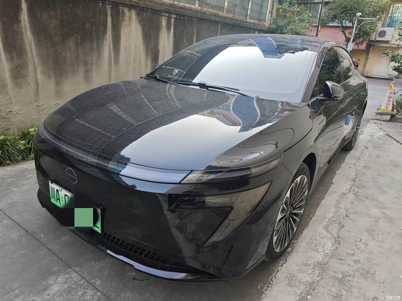 日产N7的造型走的是简约大气风,车身线条 流畅自然,没有那种花里胡哨的设计,但就 是看着很舒服,很耐看。我选的是黑色,像 黑武士一样,很帅,和车轮融为一体,就是 有些不耐脏。