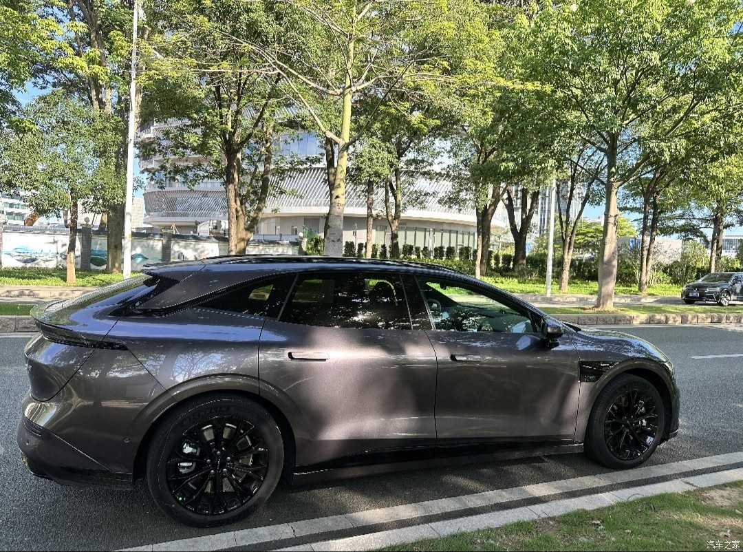 🌿外观:首先深紫色的好看车漆是我选择的原因之一,毕竟很多女生选车都是颜值控,车漆颜色宣传在纠结深紫或绿色,对比过实车后,选了紫色。👍🏻👍🏻👍🏻开了一段时间,男女老少都会被这个颜色吸引,不是单调的纯紫色,而是不同光线下呈现不一样的紫。室外远看会接近灰紫色,室内紫调更明显。其次运动风的外型、车尾的线条设计,007gt这猎装车的姿态的确让当时一心想只想选SUV的我眼前一亮。 🌿配置:75度电池+后驱,对于在广州IP,日常通勤和偶尔周边城市旅游的需求来说,已经很够用了。 🌿内饰:内饰摸上去手感挺好,不会给人廉价的质感。再加上扬声器调音码的效果,前排座椅通风、加热都具备,在门店静态体验时就有好印象。当时在门店还对比了7X,有电动遮阳帘还是很心动的。可惜就是按摩功能力度不大,聊胜于无。(之前试过小鹏的座椅按摩很舒服,有些车型甚至全座位都有按摩功能) 🌿空间:比普通轿车后排腿部空间足够,不紧凑。后排座椅可调节的角度较大,但由于座椅并不是全平的,如果是高个子久坐后排的体验可能不会太好。目前家人坐过几次觉得舒适度不错,不会有开船的感觉。有个小缺点,车门侧边的储物空间不够深。后备箱空间够用,普通露营出行或叠放两台单车的4+2都能容纳,而且后排座椅有一键放倒,这些细节都是让我满意的地方。有车友说买床垫睡着也不错,目前这个我还没体验过。 🌿续航能耗:已开1300+公里,市区道路为主,高速开得不多,充电95%后显示有613公里的续航,平均能耗13.9,再加上800V的快充,这个数据很满意。 🌿驾驶感受:目前用运动模式+高动能回收的设置,会更适合我的驾驶习惯。 🌿辅助驾驶:高速可用,去周边玩的时候很方便。 🌿智能驾驶:试过三四次,路口掉头和转弯减速比较明显,有些路段会有不必要的车道切换。作为平时享受驾驶乐趣的人来说,智能驾驶也就偶尔用用,广州市区大部分道路复杂性过高,不太实用。