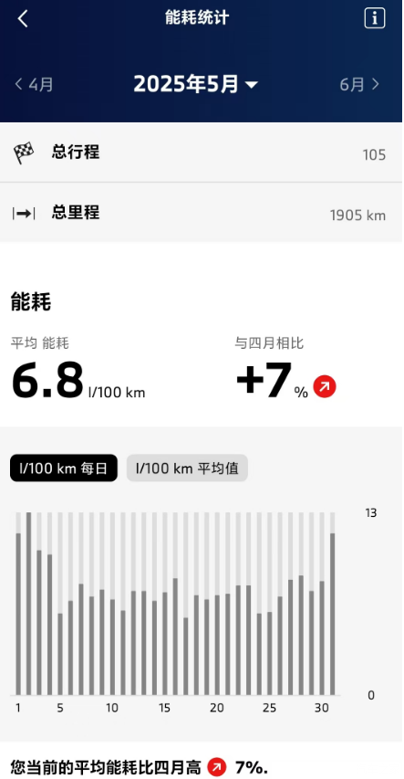 高速油耗明显6L/100公里;市区高点大概10-12L/100公里,我上下多数走的快速路,目前综合油耗6.8L