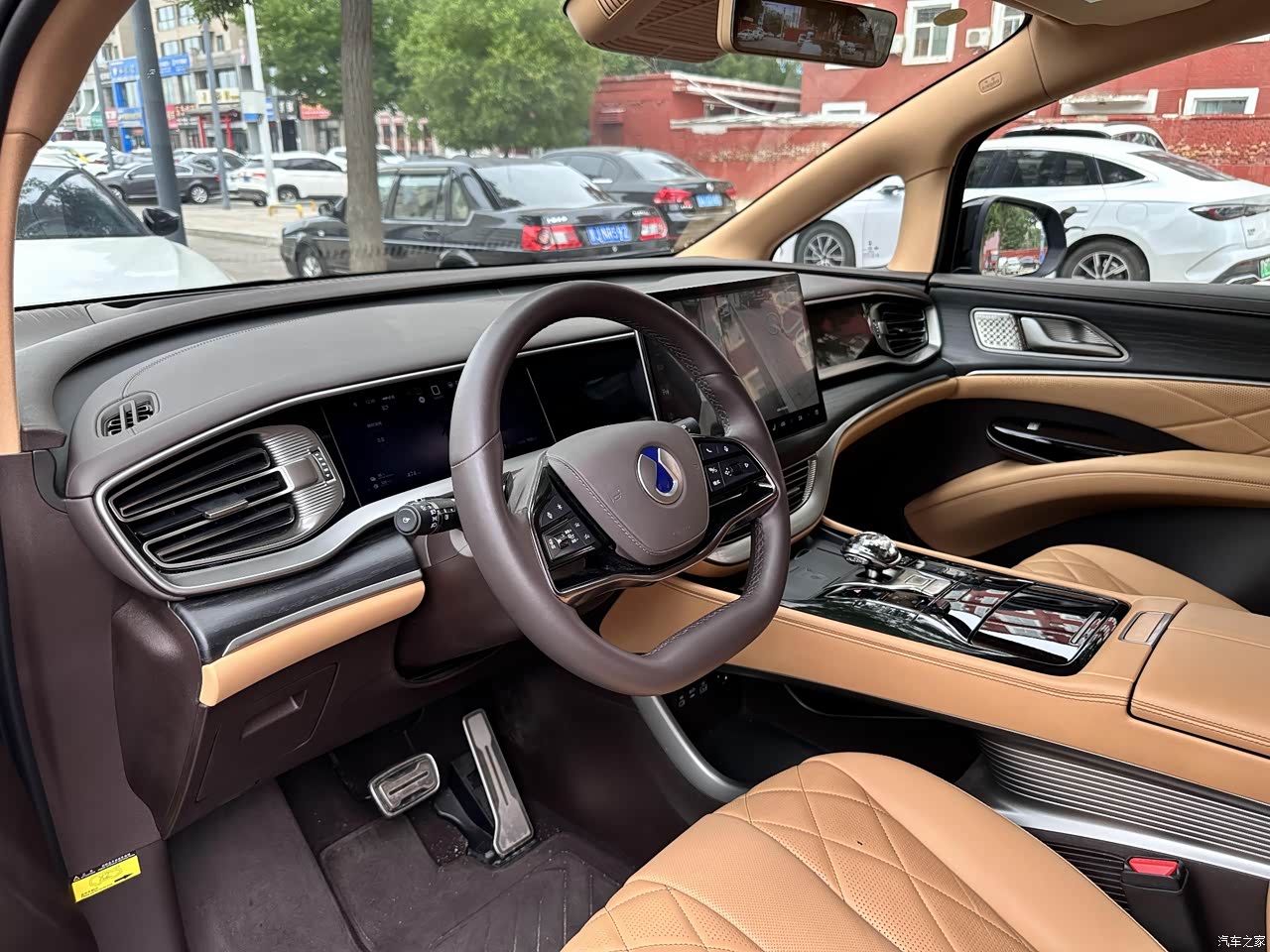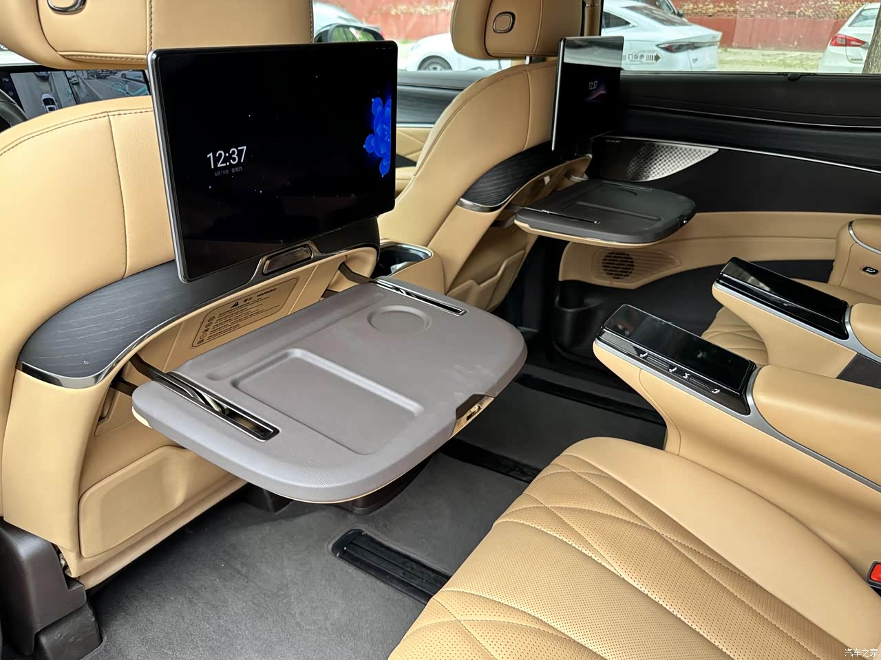内饰走的是简约豪华风,不花哨但耐看,而且豪华度确实也到位了,钢琴烤漆面板其实有利有弊,好看但沾指纹,座椅的皮质软和支撑好,长途坐着不累。方向盘加热直接标配了,可以说是冬天神器,摸上去暖暖的,虽然现在用不上,但这个功能我挺喜欢的。中控屏像块大平板,可以做到流畅不卡顿,安卓底层机制,功能多到能玩游戏,只不过系统逻辑上有待优化。中排的冷暖箱和小桌板实用,放个小电脑或咖啡杯都行。整体做工挑不出啥毛病,没有廉价塑料感,挺好。