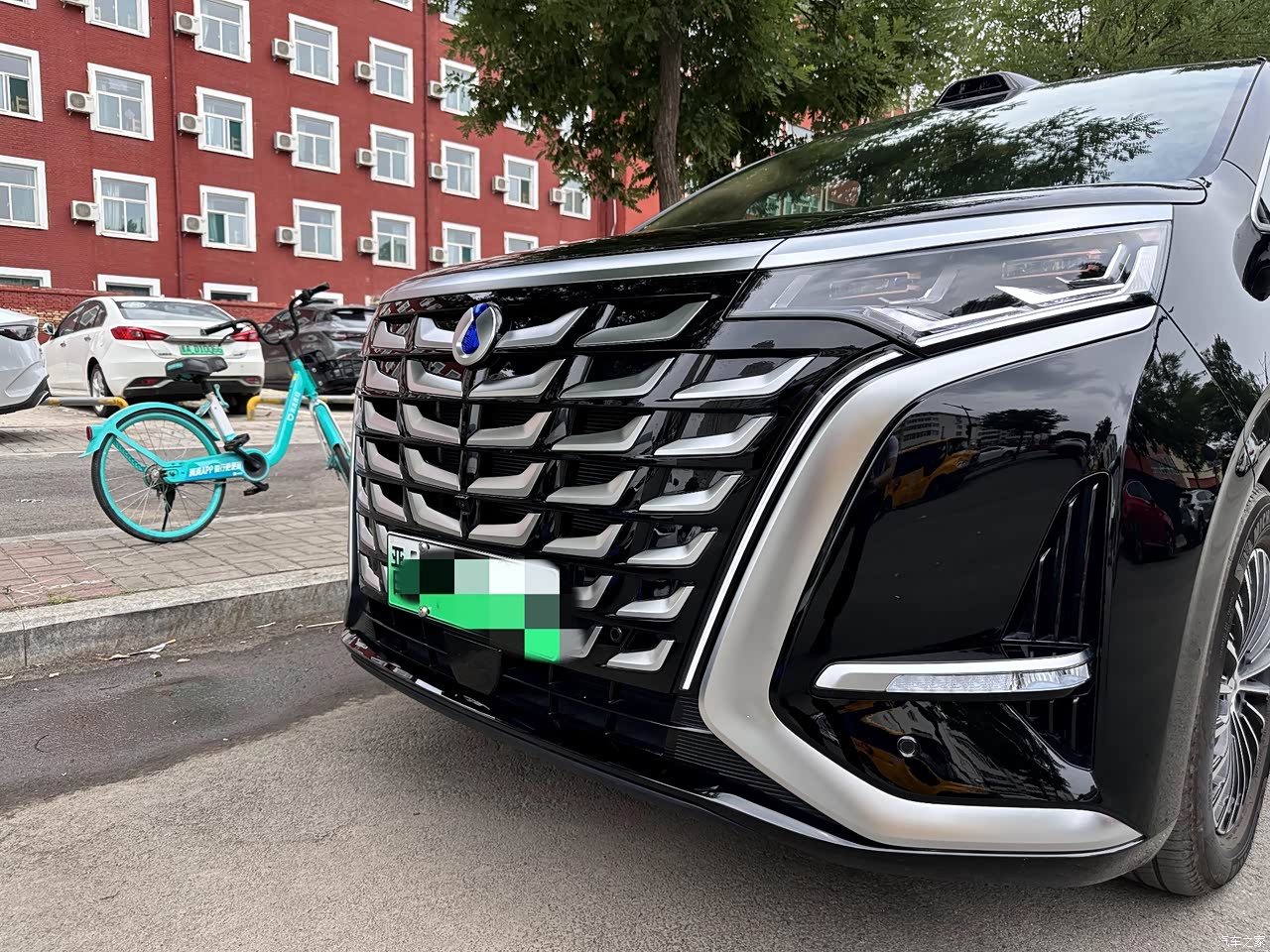 外观看着挺唬人的,整体大气不廉价。前脸最吸睛,大灯配镀铬条,豪华感拉满,像个小埃尔法,开出去有面子。侧面线条流畅,隐藏滑轨设计不突兀,深色车窗显稳重。尾部就一般了,贯穿尾灯还挺帅,但整体风格跟前脸不是很搭,感觉收尾草率。不过话说回来,挑来挑去在这个价位里,腾势D9可谓是颜值上的老大了,整体看上去非常雄武大气,这些还是很不错的。