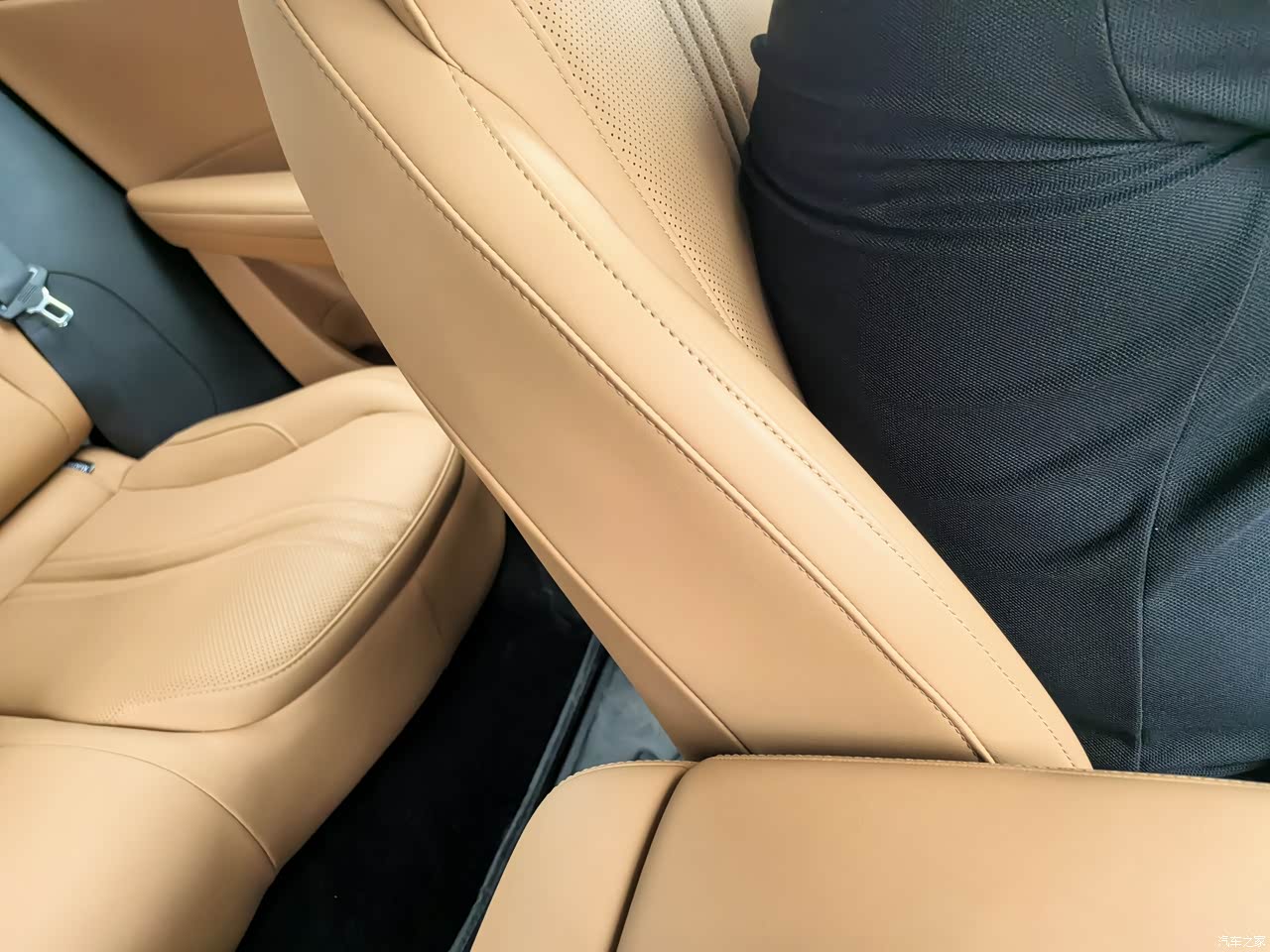 高级感,温馨感都有了,手摸到的地方软的皮的居多,摸着比较舒服,座椅是棕色的。皮子细腻,坐着不软不硬,更正合适,副驾。通风加热谁用谁知道,三块儿打平是科技担当,尤其副驾那块儿屏追剧。神奇老婆孩子抢着用方向盘,样子比较别致,或者比较有劲儿,晚上氛围灯一开,小情调就来了,设计也简洁,看着不闹心。