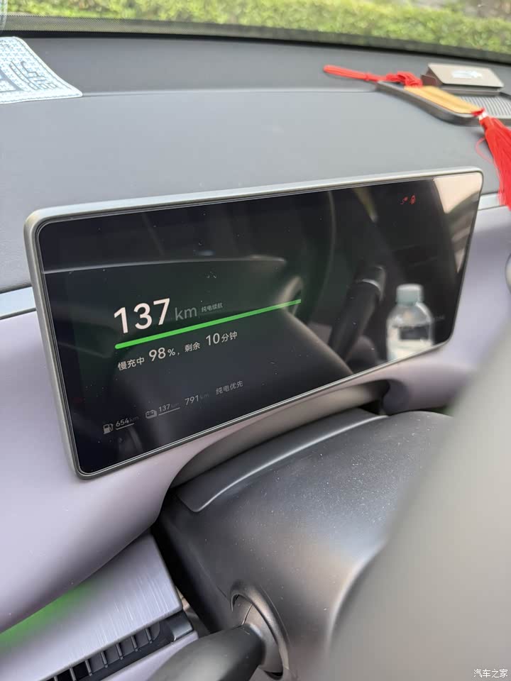 之所以买增程就是不担心续航问题,没有电量焦虑,满油满电跑就结了,油耗也不算高,电耗中规中矩,纯电里程表显140左右,但充电速率还可以,30-80快充确实只要十几分钟,慢充充满三个多小时