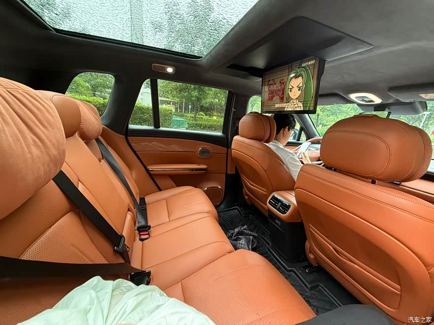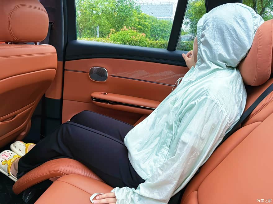 后排的座椅也是可以137°躺下来的,腿托也是,就很适合我这个高度的哈哈,双脚离地躺上来,那些个腿长的可能躺着就没我这么舒服了,这跟趟床上有什么区别,还可以按摩。正好趟后座看电视,这个车带娃出行简直是棒棒的。后排空间也大。在车上玩闹累了,就可以看看电视安静一下。