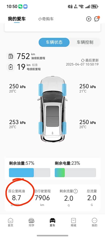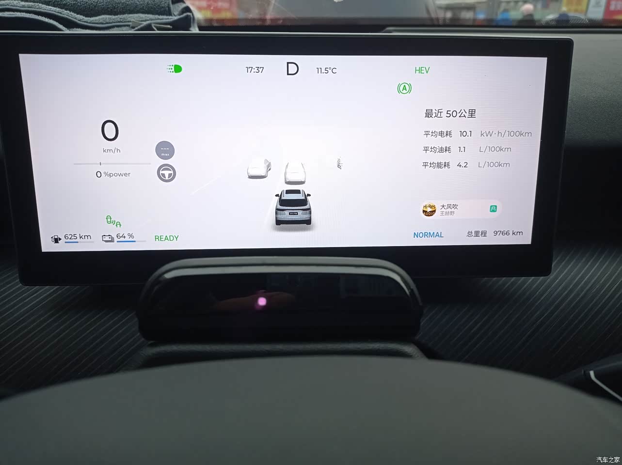 开空调情况下用电用油折合4.1升/百公里。