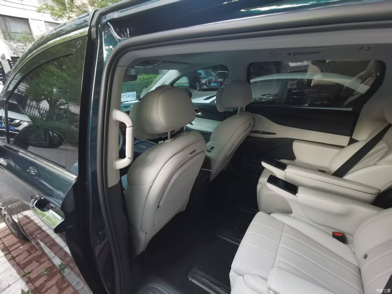 双电机四驱系统,零百加速5.9秒,推背感特别强烈,但车身姿态控制得很好,没有传统MPV急加速时的抬头现象。前双叉臂+后五连杆独立悬架,支撑性特别好,连续过弯侧倾抑制比腾势D9 EV还好。刹车脚感偏软,初段制动力反馈不足,得深踩才有明显减速,建议开车时预留更多安全距离。