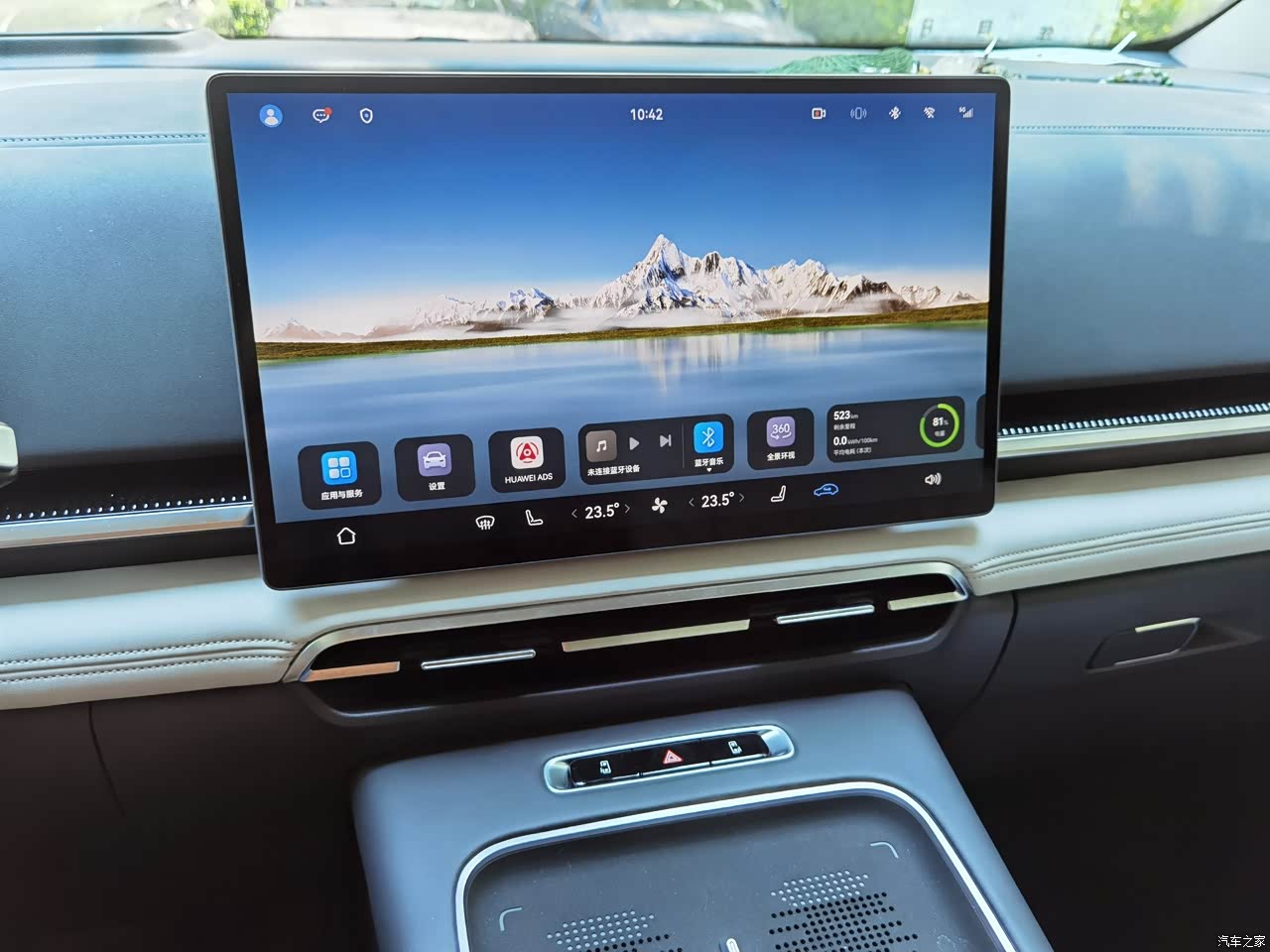 华为鸿蒙座舱的交互逻辑特别简洁,主界面是卡片式布局,导航、音乐、车辆状态等信息一目了然。三指飞屏功能特别实用,导航信息一飞就投射到AR-HUD上,不用再扭头看中控屏。语音助手支持四音区识别,副驾的人说“打开副驾座椅加热”,它也能精准响应。无线CarPlay需要外接盒子才能实现,原生支持没有,有点遗憾。