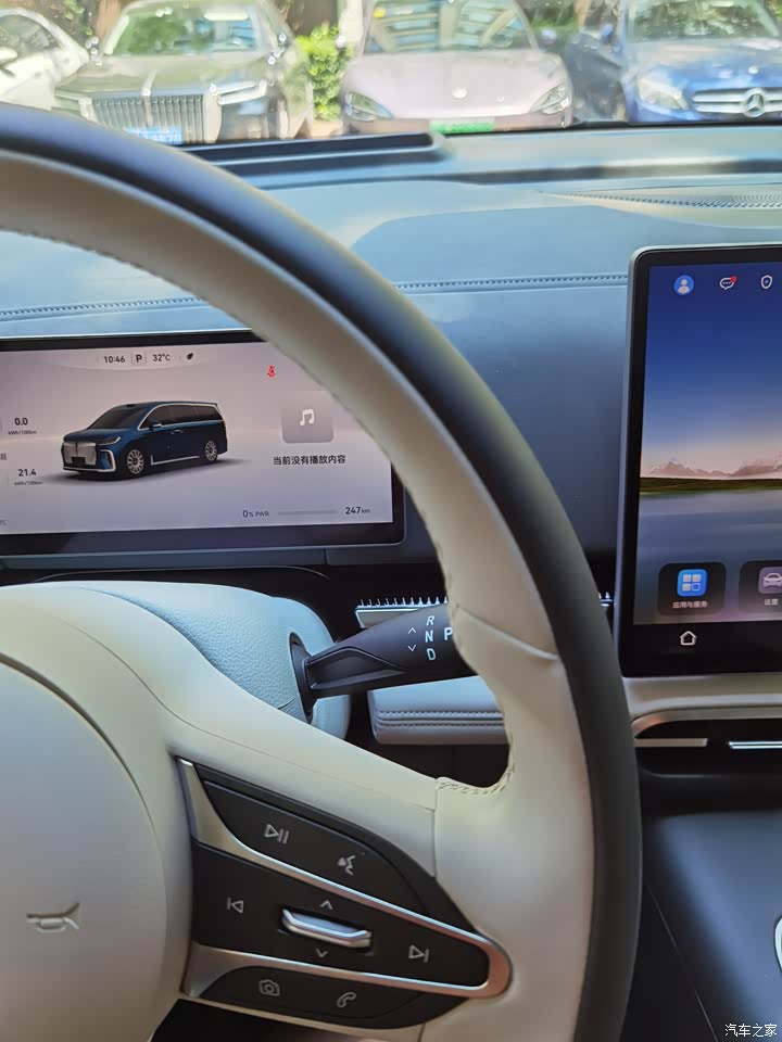 中控台用的是软质皮革包覆,摸起来特别舒服。15.6英寸的悬浮式中控屏好用又紧跟潮流,二排的座椅采用OEKO-TEX认证的亲肤皮革,透气性很好,夏天坐久了也不会觉得闷热。座椅骨架用的是航空级铝合金,既轻又结实。但浅色内饰真的太容易脏了,特别是家里有小孩的,吃个零食、洒点饮料,马上就留下印子。建议大家选装内饰防护套装,能省不少心。