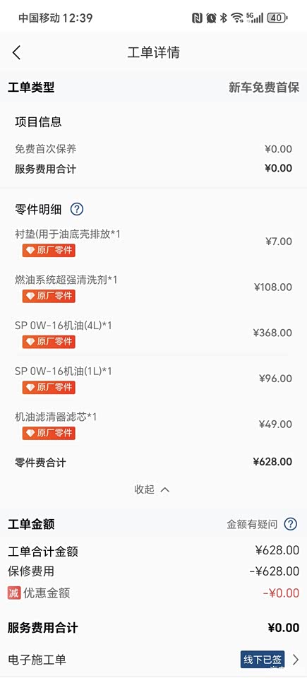 刚做完六个月的免费首保,项目清单是628元,后续保养10000公里一次,等把那一张免费保养券用了,后面考虑去外面京东养车保养看看,应该能更便宜。