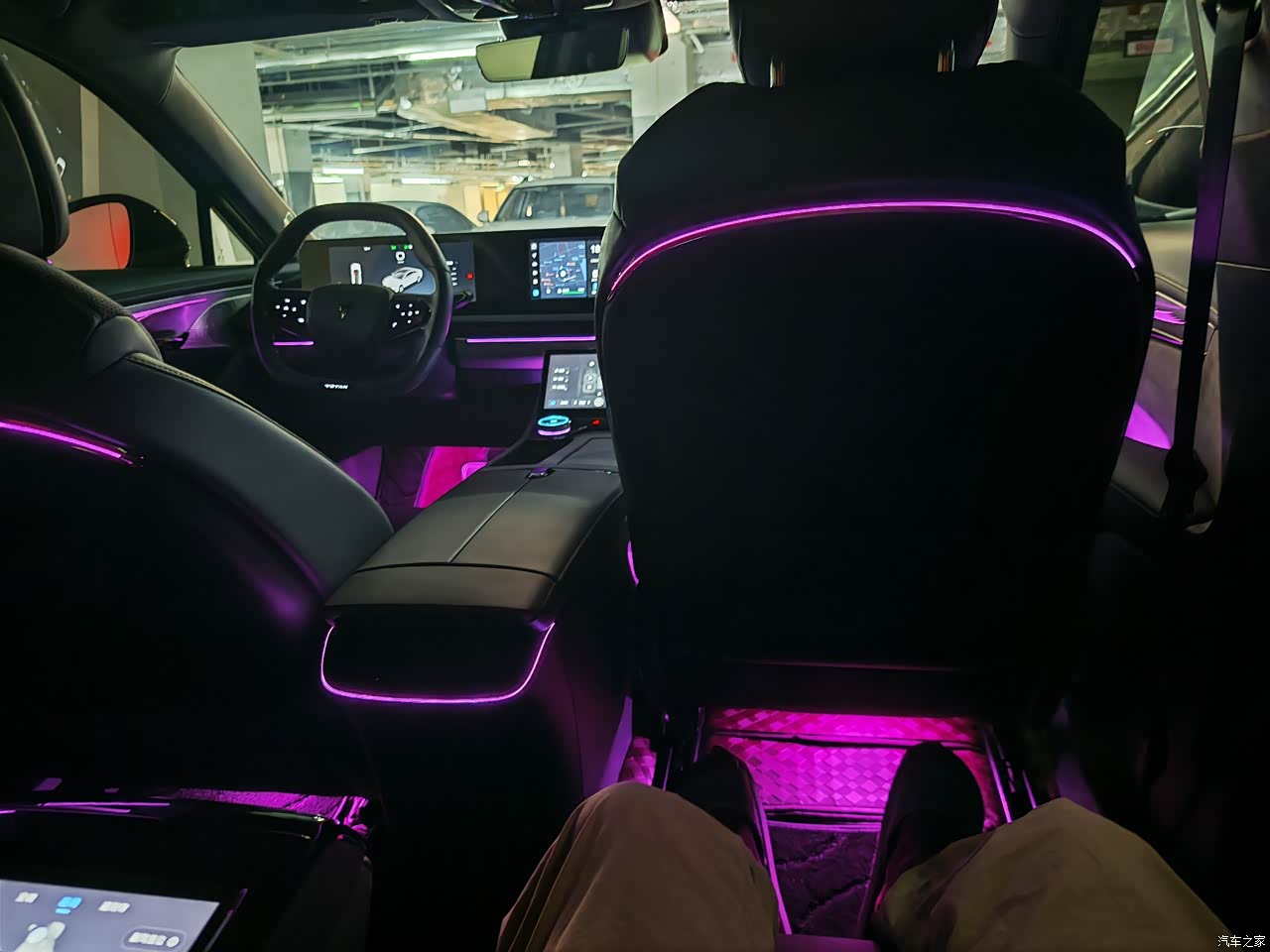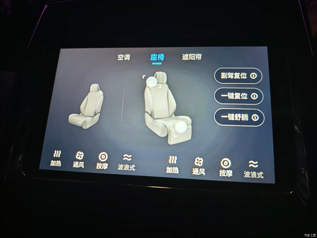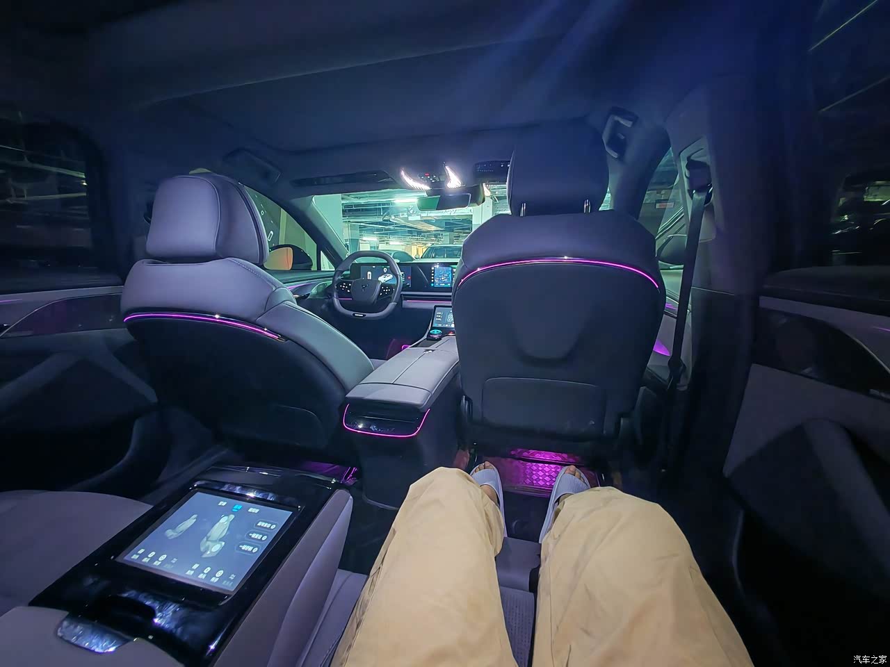 车内大面积采用了软质材料和麂皮材质包裹,触感非常细腻。中控台配备了一块12.3英寸的三连屏,显示效果清晰操作流畅,座椅方面,前排座椅支持通风、加热和按摩功能,后排座椅同样配备了通风和加热功能,而且还带有电动调节和老板键。坐在后排,打开座椅按摩,再把腿托升起来,瞬间就有了一种陆地头等舱的感觉。