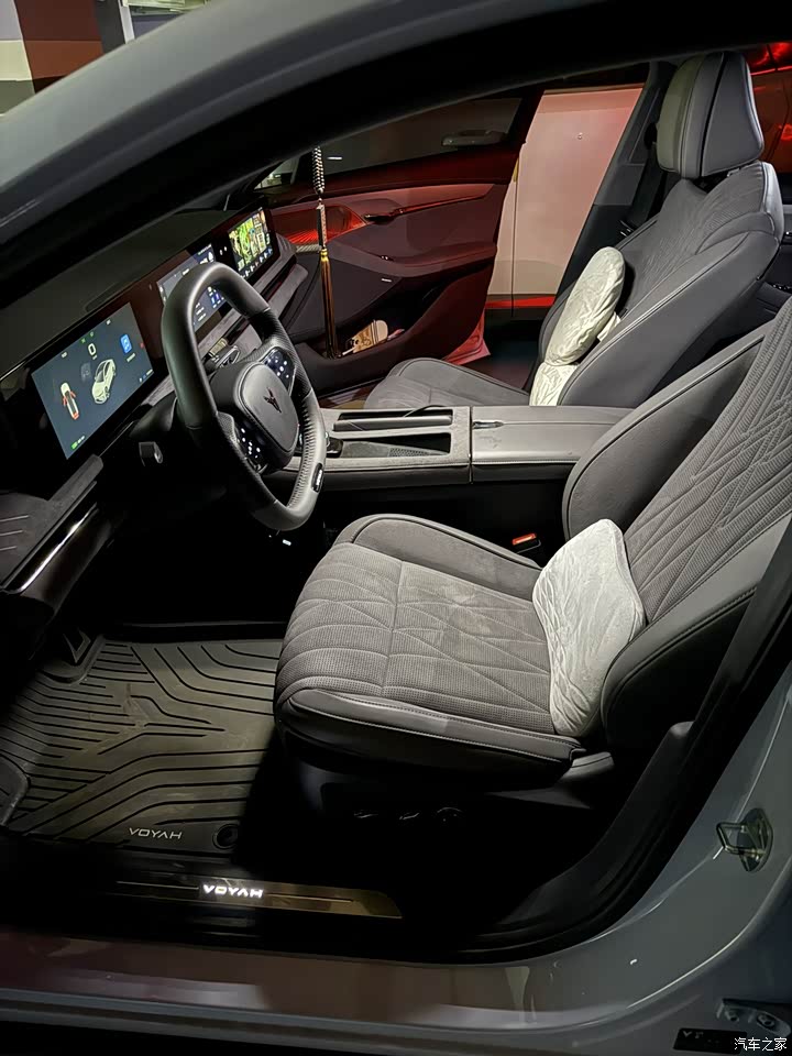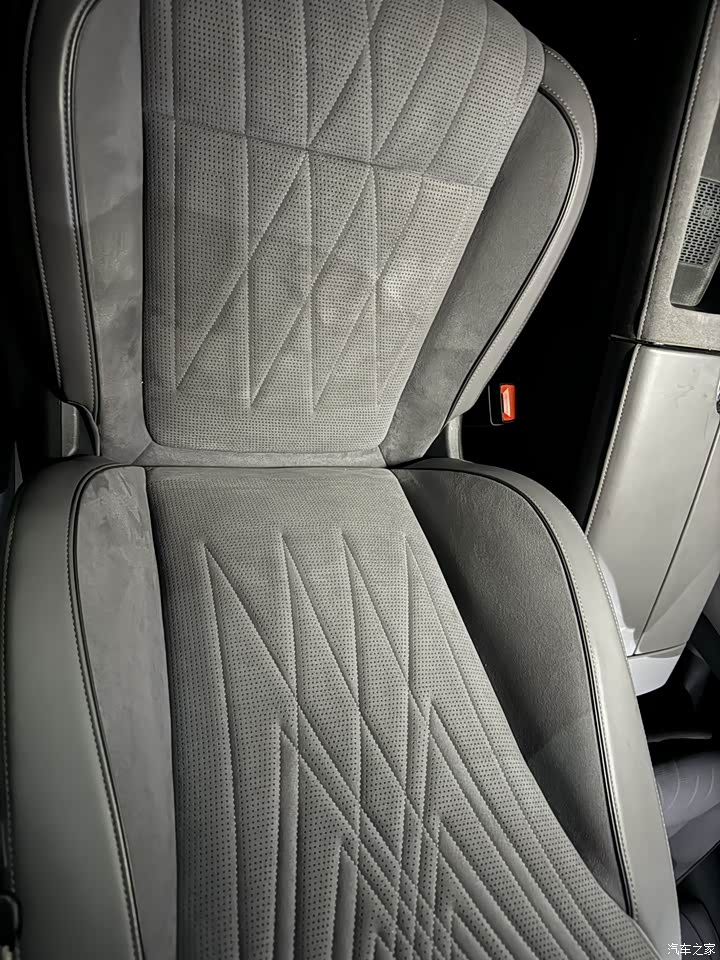 坐进车里,最抢眼的就是那套高分辨率的三联屏(12.3英寸仪表盘+12.3英寸中控屏+12.3英寸副驾娱乐屏),显示效果细腻得像平板电脑。内饰用料真舍得下本,中控台大面积翻毛皮包裹,门板上是软皮,连扶手箱盖都是软质材料,摸上去质感爆棚。我选的深色内饰搭配木纹装饰条,高级感不输50万的豪车。座椅舒适性必须给满分。通风、加热、按摩都有,我这种老腰突患者开长途也不腰疼。后排座椅还有腿托,父母坐后排直呼舒服。