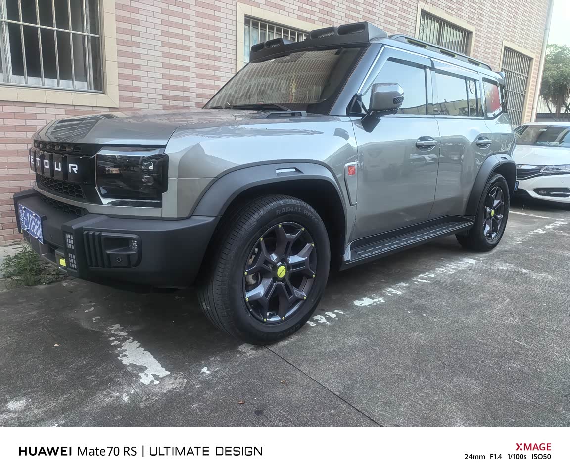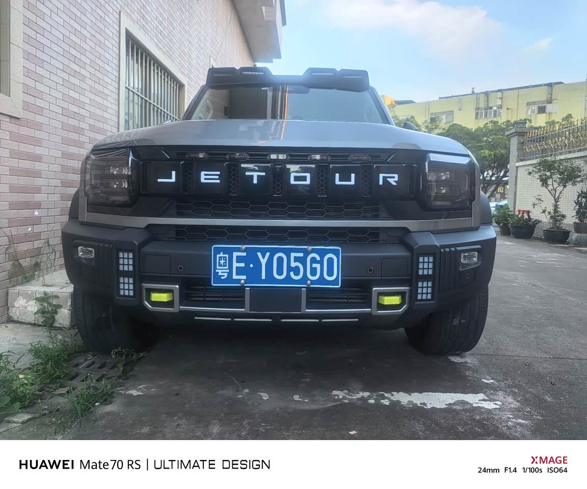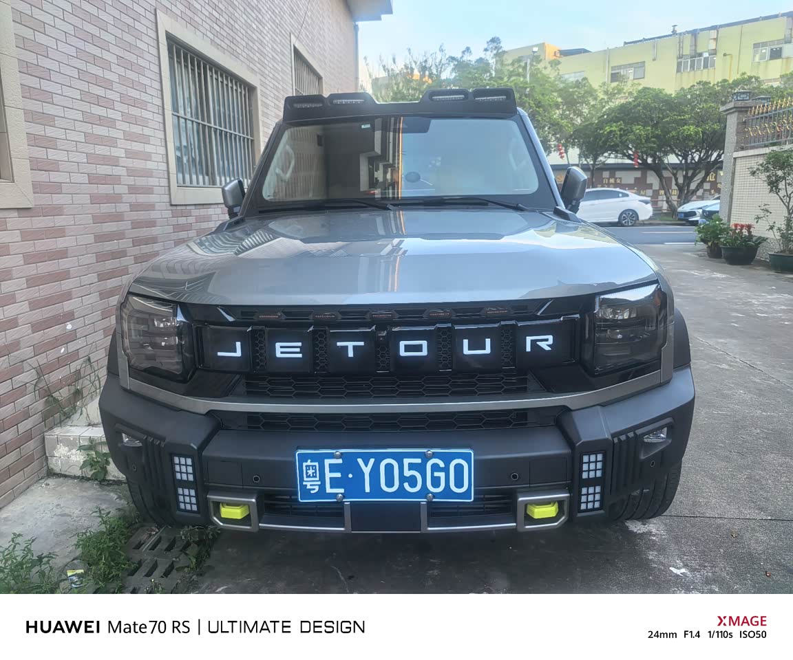 捷途旅行者的外观设计极具辨识度,整体造型硬朗大气,展现出强烈的越野风格。前脸采用大尺寸的进气格栅,搭配粗壮的镀铬饰条,与两侧犀利的大灯组相连,营造出极具冲击力的视觉效果,仿佛一头蓄势待发的猛兽,彰显出独特的力量感。