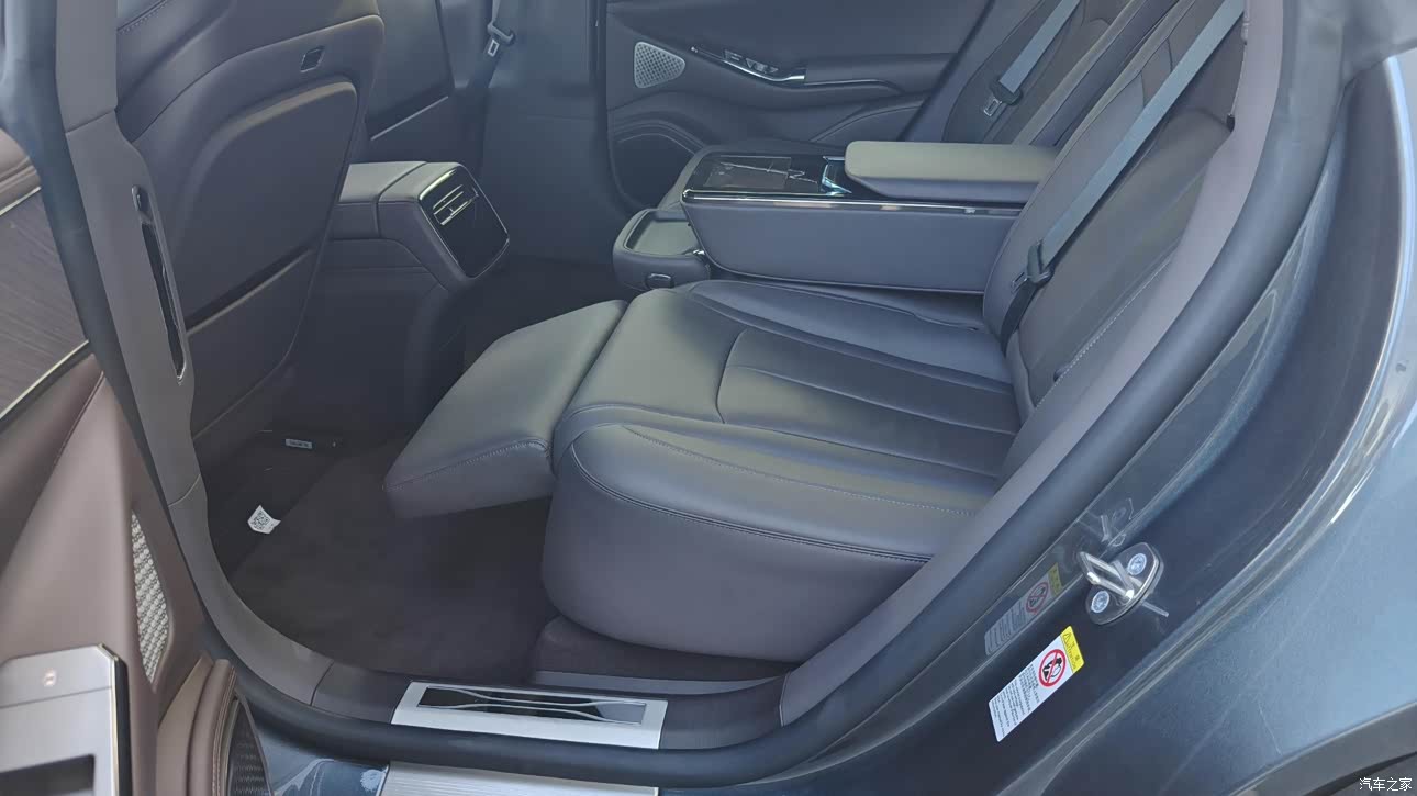 材质工艺:Nappa真皮座椅+浅黛真木饰板,触感高级;但新车异味明显,通风两周缓解,侧面和地板都有出风口,广东用降温特别快 后排特权:Max版标配电动腿托,咱俩女王大人都说好,熊孩子看中控屏幕电影也能安静开车。