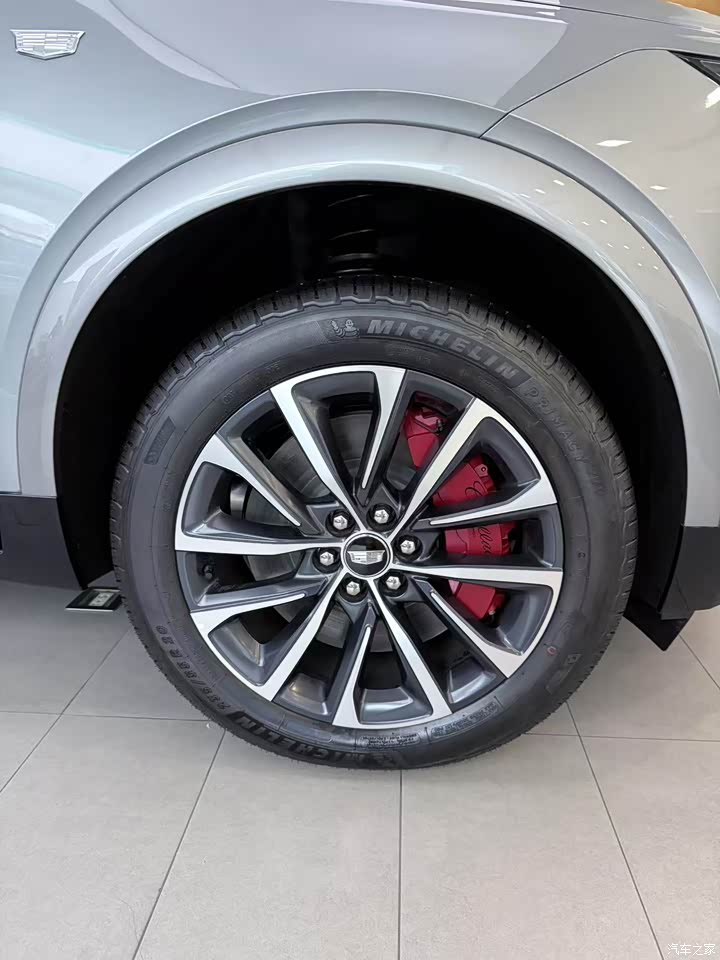 XT5的外观是我对它“一见钟情”的重要原因。凯迪拉克标志性的钻石切割设计风格,让整车线条凌厉又极具力量感。直列式飞翼大灯搭配盾型中网,每次解锁点亮车灯,都仪式感满满,且夜间照明效果出色。悬浮式车顶和大尺寸轮毂,运动感十足,车身比例协调,走在路上回头率超高,每次停车我都忍不住回头多看几眼,真的越看越喜欢 我选得是豪华版,六活塞卡钳真的非常有诱惑,再加上蜂鸟MAX底盘,但是最终我还是从自身实用情况选择了豪华版,如果有经常高速或则喜欢自驾出游的可以考虑尊贵,安全系数更高