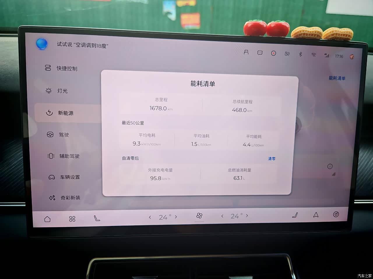 自提车加了一箱油,冲了三次电,一共行驶了1500多公里的里程,还有剩余百十公里,平均油耗4点多,对于这个2吨的大家伙,我是非常满意了。基本上加满油充满电出一次远门不用再担心补能的问题了。