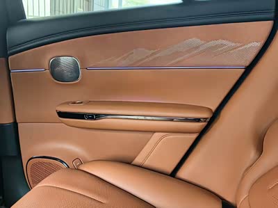 山水元素藏细节,皮质触感绝了。后排门饰板的皮质在灯光下像传统山水画,光影流动的感觉很惊艳,中国风元素融入得很高级。中控台软包材质触感细腻,方向盘握感扎实;我选的内饰颜色是橙色,当时觉得浅色容易脏,所以选了橙色,也耐看不怕脏。