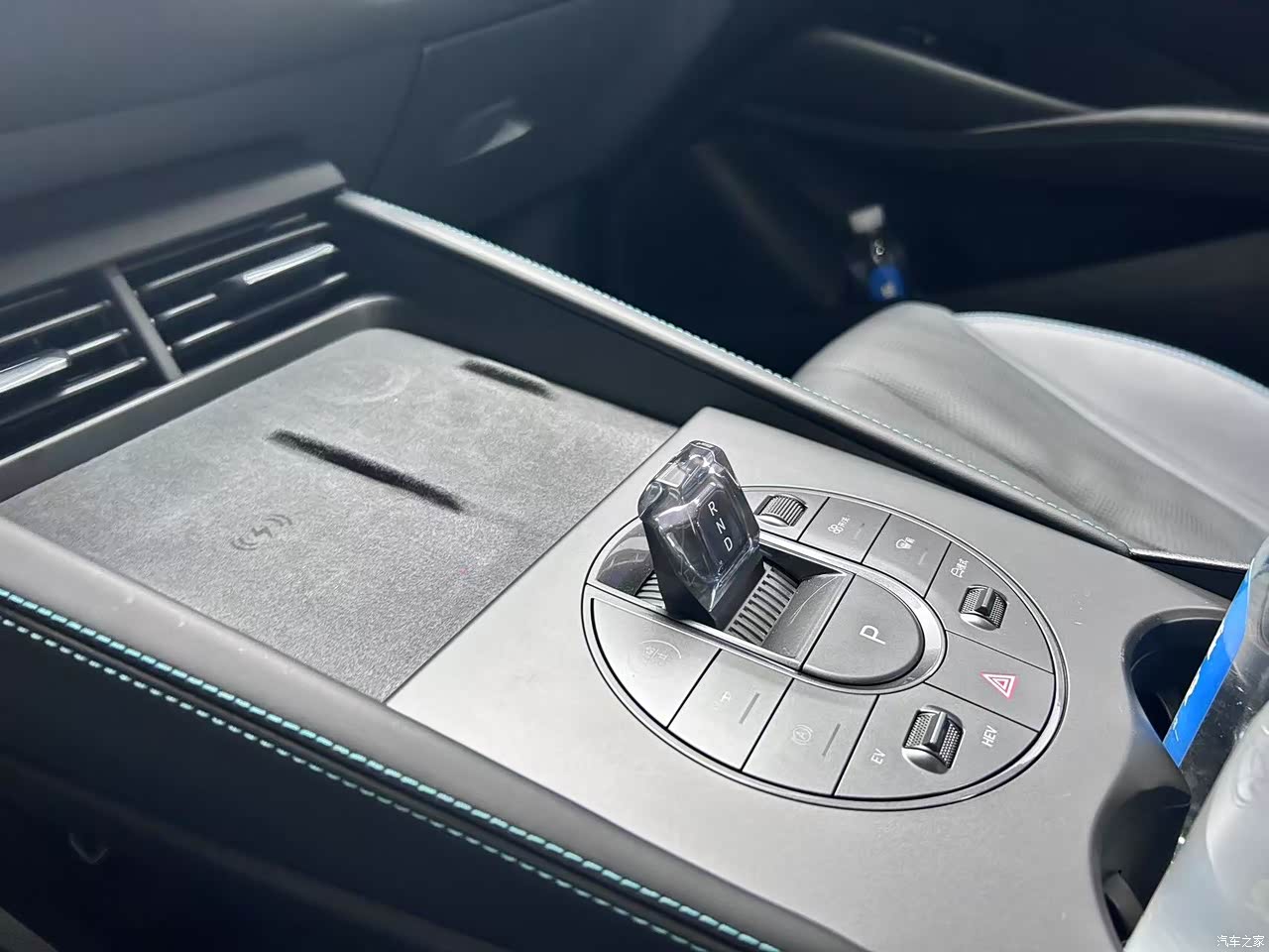 内饰的话比较经典,是黑色和灰白色的内饰搭配,中缝线采用跳色,增加点色彩。档杆是水晶的,很精致洋气。中控屏幕是12.8英寸的,搭配中控钢琴漆面的设计,满满的科技感。座椅是一体的运动座椅,包裹性支撑性很舒服,高配置还有无线充电。