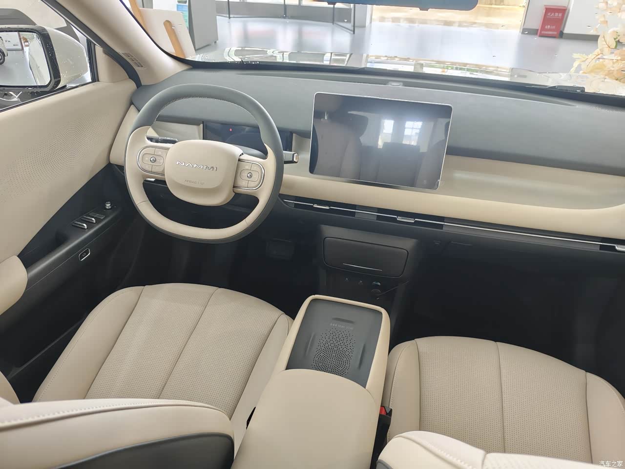 我的是米黄色的内饰,很耐看,不过不耐脏喔,手上脏摸上去挺明显的,用毛巾沾水可以擦掉,材质摸起来爽滑爽滑的,不过是有点新车臭味,等我多开窗暴晒几天看看。