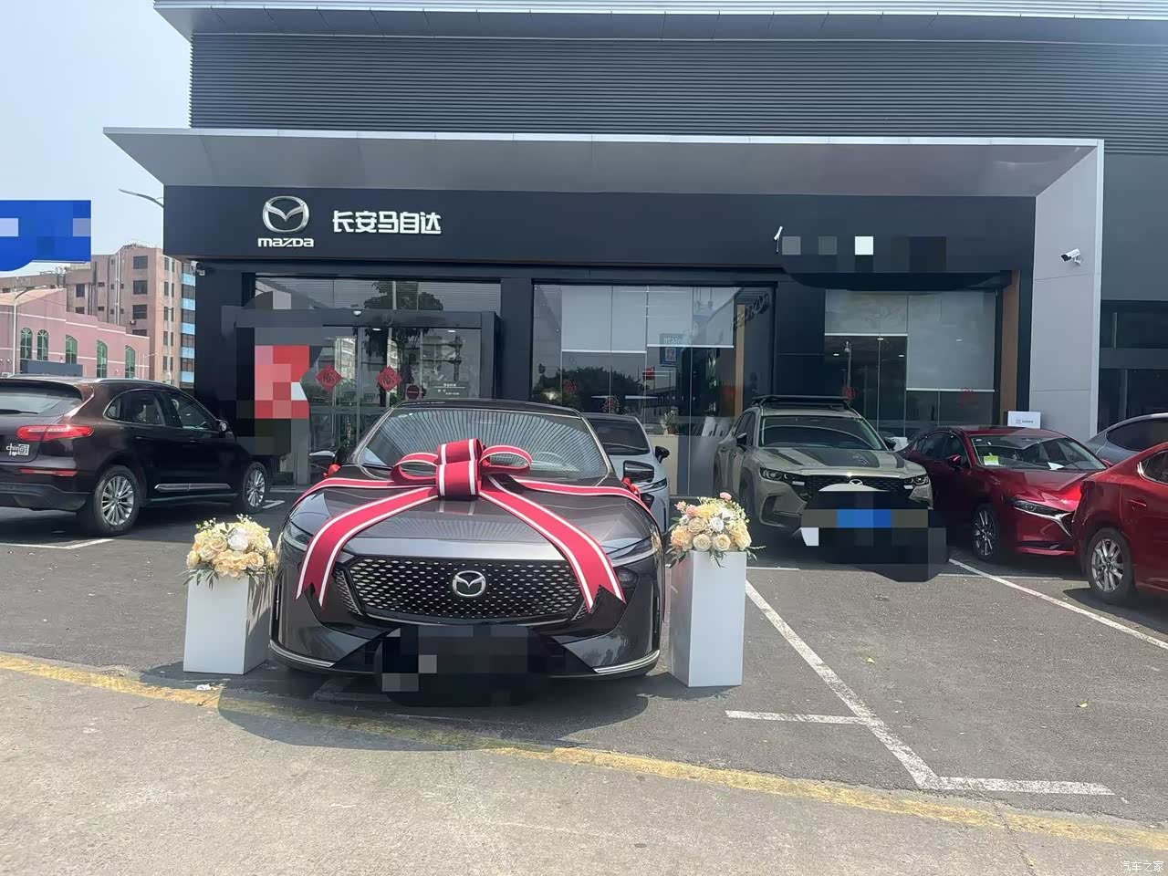 前脸设计保留了马自达经典的盾形中网,但采用封闭式点阵格栅,搭配细长LED大灯,科技感和运动感兼具。 溜背造型+无框车门+隐藏式门把手,风阻系数低,侧面线条流畅,视觉效果动感。