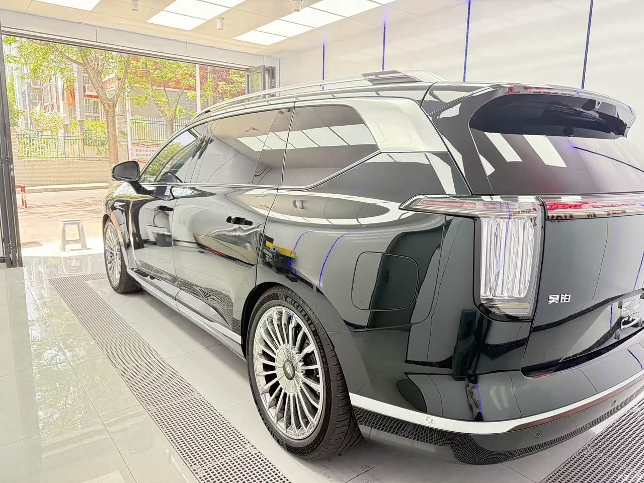 昊铂HL采用“陆地游艇”设计理念,5126mm的修长车身搭配流畅线条,整体气场十足。分体式大灯组里的立体水晶灯柱很有辨识度。特别是我选的深海绿这款颜色,阳光照射下呈绿色,在自然光下又变成黑色,稳重的同时又彰显一些个性,真的很喜欢。