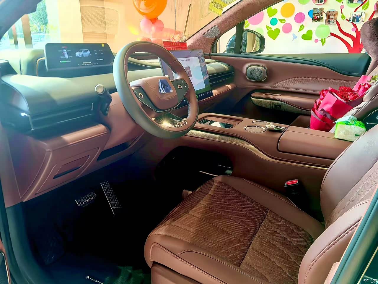 内饰大面积采用Nappa材质,柔软亲肤,缝线工艺也很精致,细节处理到位。“山海远望”仪表盘是全景悬浮式设计,HUD抬头显示、全液晶仪表和17.3英寸中控屏,信息读取方便又清晰。