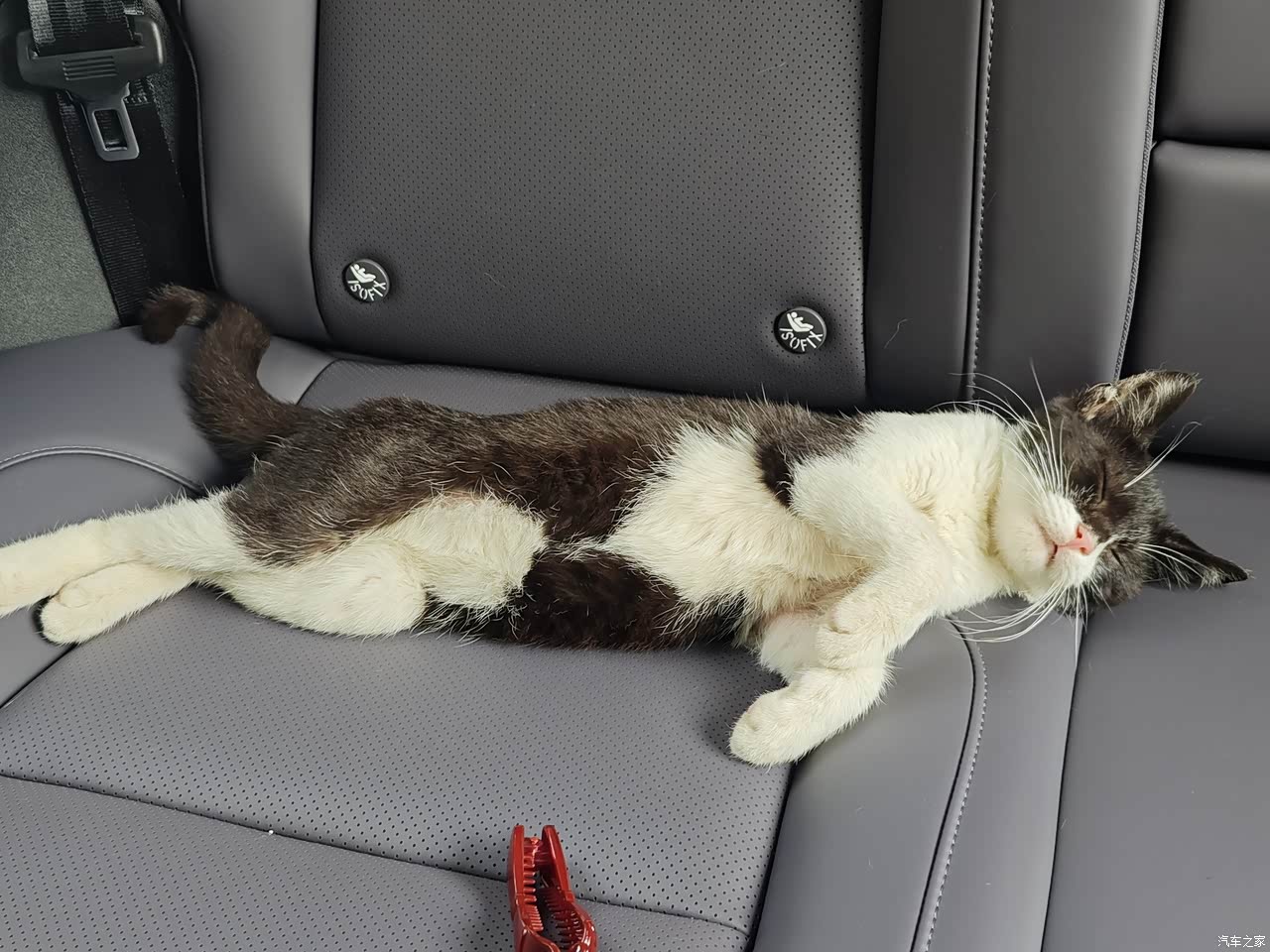空间还是不错的 喜欢大后排!哈哈我的小咪 尽情感受大躺椅吧 里面味道也散的差不多了 刚开始提车的时候 闻着会有点晕 后面散多了感觉还挺好闻的