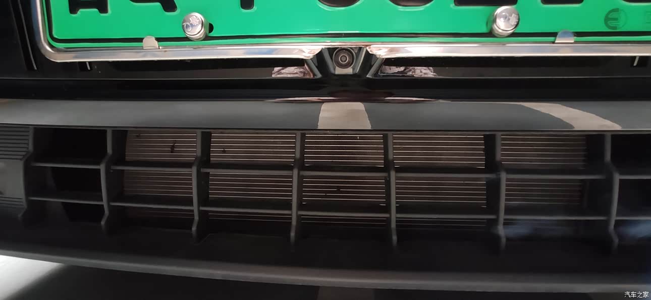 前置摄像头的位置和车牌架有点冲突了。这安装完车牌了,才发现360全景的前置图像只显示一半,检查才发现,车牌架有点挡摄像头了,没招了,把车牌架剪去了一块,好难看。好在多多上有T9的专用车牌架,改天给它换了。
