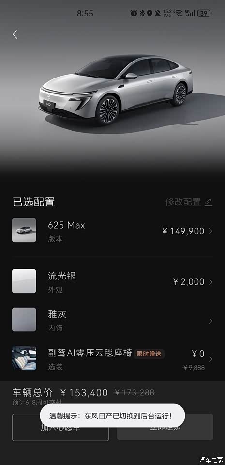 我选的是625Max版本,裸车14.99w 2000元流光银 1500元运动包, 上牌保险5000元。 减去-置换老车-66500元,-小定权益2001元,-省补13000元,-置换补贴和其他补贴13000元,最后算下来6.5w左右。 厂家限时赠送了副驾云毯座椅、头枕音响、冰箱、大灯灯语之类的。所以性价比来说还是很不错的。