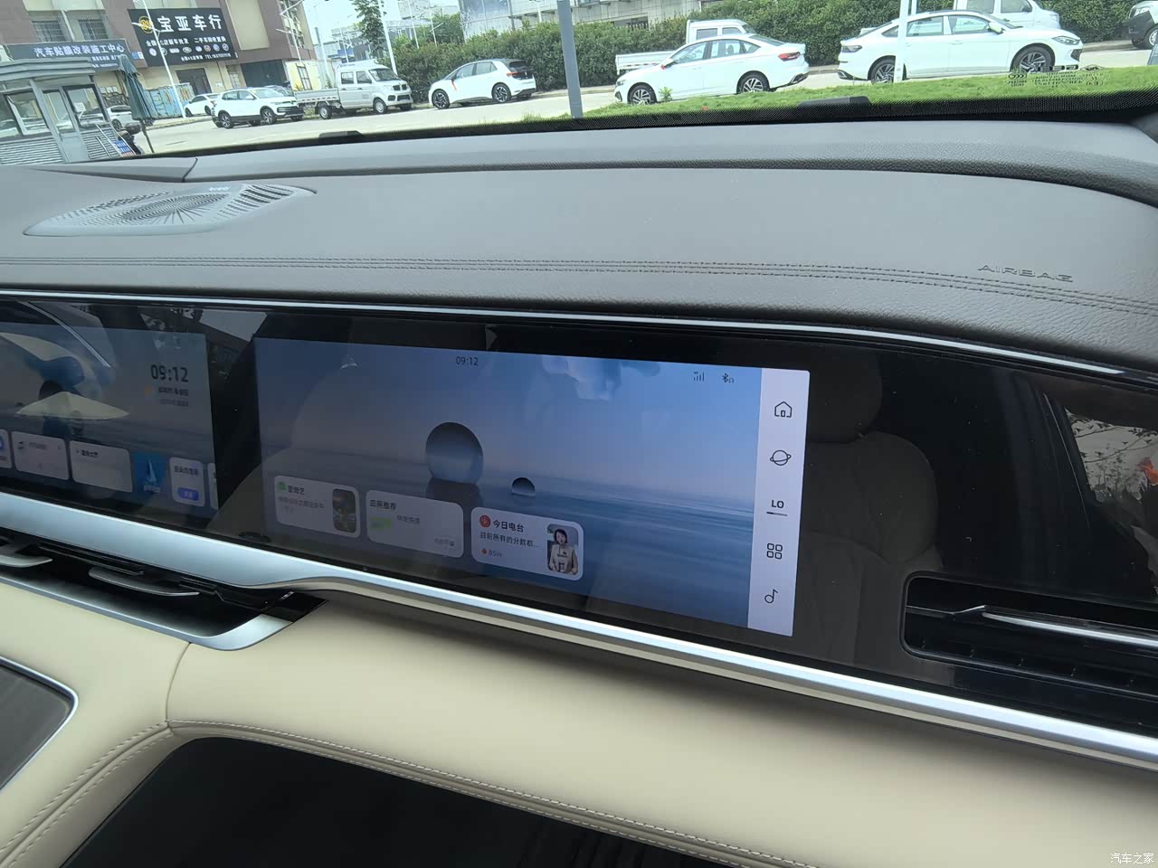 内饰方面,你一进入车内你就能看到前排的三块大连屏确实是让整个车科技感很强,并且中控扶手的话也搭载了一个快充,基本上手机放在车内到达目的地的时候,车子里面总能够充满了