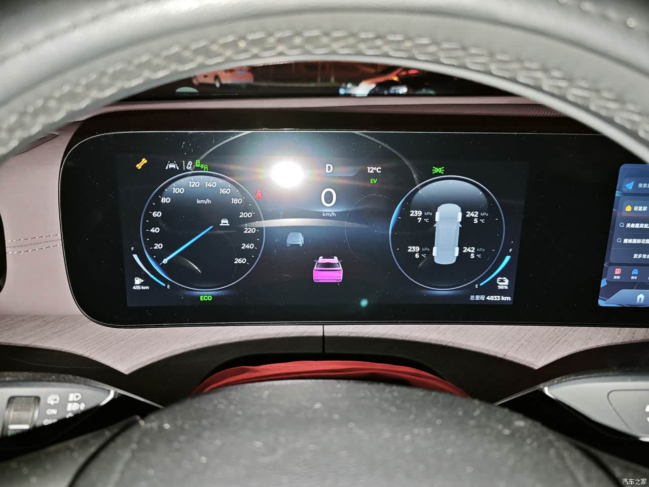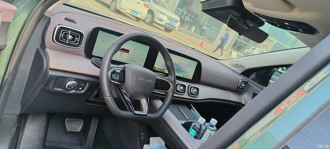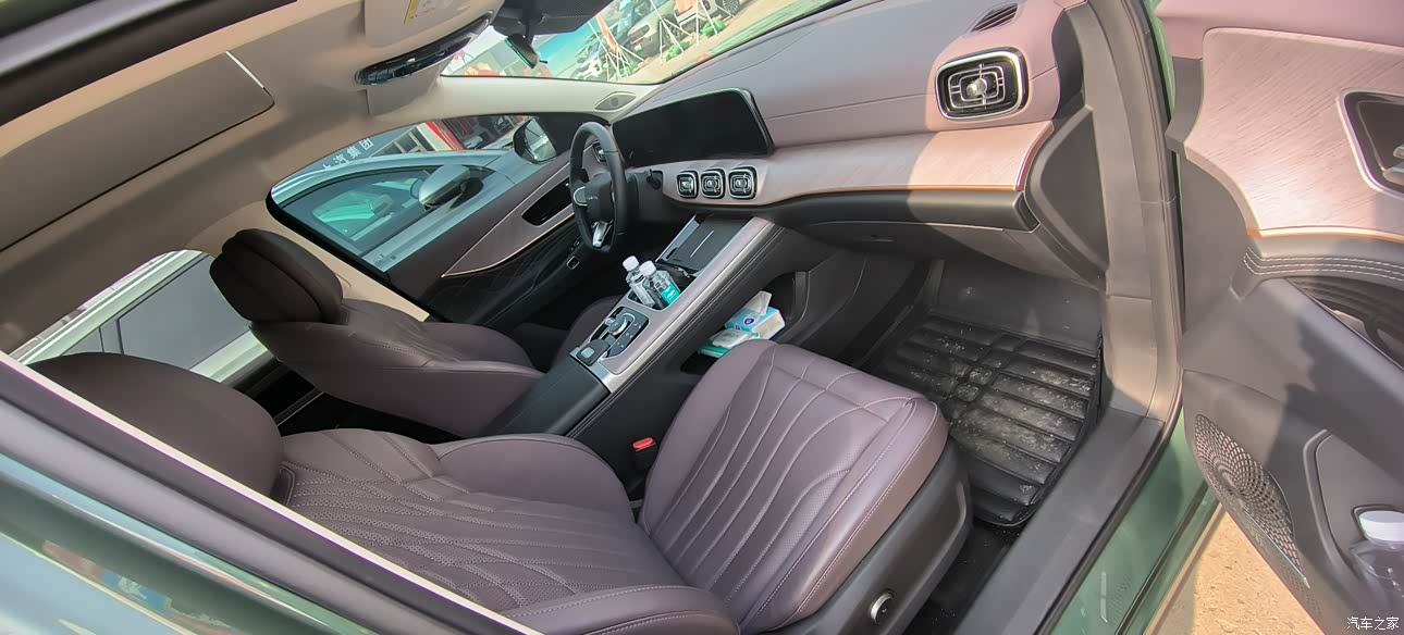 内饰比较新颖,能够与时俱进,与众不同。内饰方面,一坐进车里,就能感受到它的科技与豪华。全数字仪表盘和悬浮式中控大屏搭配得恰到好处,信息显示清晰,操作也很流畅。车内的软包材质摸起来很舒服,木纹饰板也提升了不少档次。孩子们可喜欢了,语音互动、唱歌、听歌、看电影、玩游戏都没问题。打开空调,再开启座椅按摩,真的太享受了。唯一有点小遗憾的是,主驾的坐垫要是能再长一点