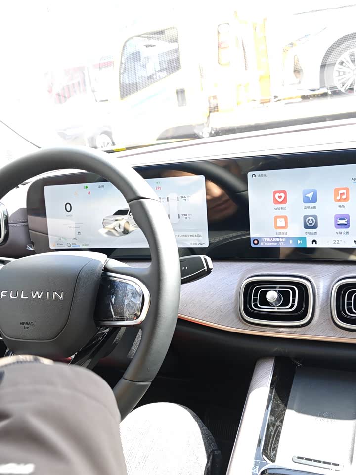 空间非常大,体现了宽敞舒适性。 内饰方面,一坐进车里,就能感受到它的科技与豪华。全数字仪表盘和悬浮式中控大屏搭配得恰到好处,信息显示清晰,操作也很流畅。车内的软包材质摸起来很舒服,木纹饰板也提升了不少档次。孩子们可喜欢了,语音互动、唱歌、听歌、看电影、玩游戏都没问题。打开空调,再开启座椅按摩,真的太享受了。唯一有点小遗憾的是,主驾的坐垫要是能再长一点,或者加上腿托就更完美了。