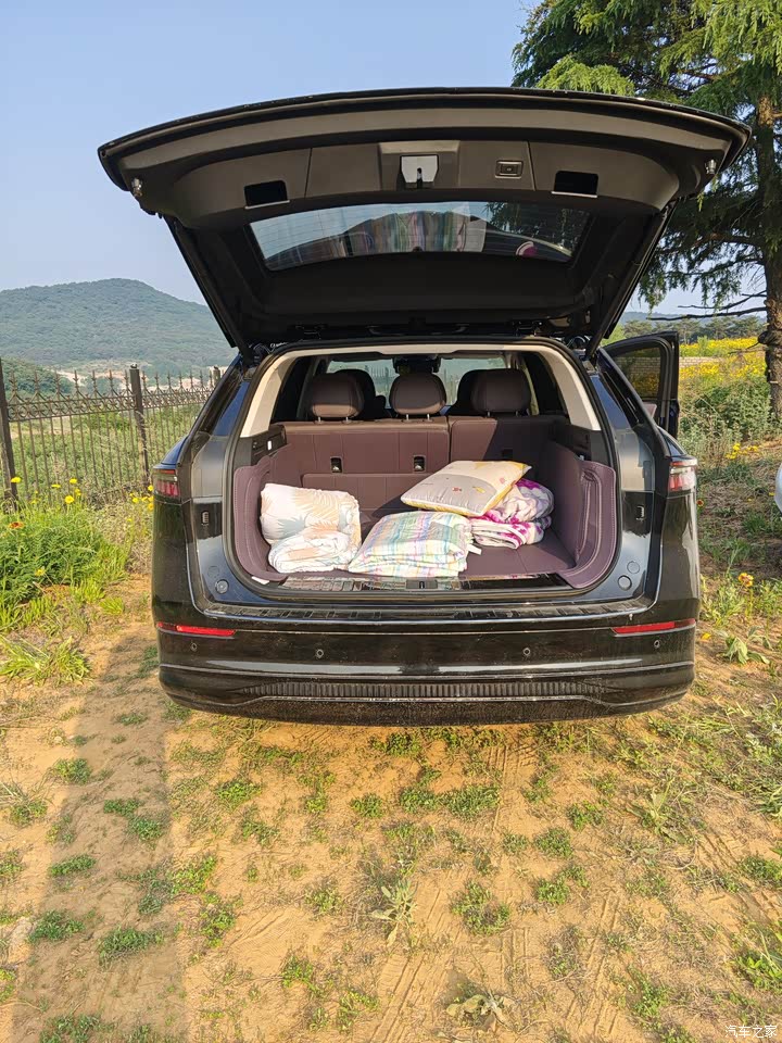 对于我这种喜欢自驾游的人来说,真的太友好了。车长4850轴距2820,前后排空间都很宽敞,就算是一家人出去,也不会觉得拥挤。后备箱容积也很大,支持一键放倒,秒变两米大床。上次我们全家出去露营,晚上就直接睡在车里,特别舒服。再加上它还有外放电功能,出去露营的时候,用电不愁,煮个火锅、泡个茶都很方便