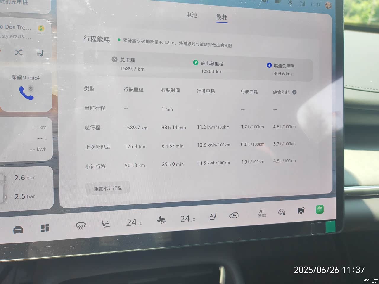 核心动力:1.5T + 165kW大电机的“黄金搭档” 起步/低速(纯电优先):这是我最爱的部分!165kW 的大功率电机真不是盖的。只要电量充足,起步那一下,安静、迅猛、丝滑。踩下电门的瞬间,一股持续、线性且强大的推力就把车稳稳地推出去,红绿灯口第一个冲出去是常态,而且完全听不到发动机的噪音,只有轻微的风噪和路噪。在市区拥堵路段跟车、加塞(安全前提下)或者需要瞬间提速超慢车时,电机的响应速度是传统燃油车完全无法比拟的,“指哪打哪”的感觉非常爽快。这种顺畅感,让每天的通勤烦躁感都少了很多。 动力储备足:1.5T本身基础排量就不小,再加上165kW大电机的加持,中后段的加速能力非常从容。高速上从80km/h提到120km/h甚至更高,动力依然源源不断,超车非常有信心。那种电机瞬间爆发扭矩加上发动机持续发力的组合拳,让超车变得干脆利落,完全没有小排量涡轮增压车那种“光吼不走”或者干等涡轮起压的尴尬。 效率提升(感知):500bar高压直喷理论上能让燃油雾化更充分,燃烧更彻底。直观感受就是,即使在发动机频繁介入的亏电状态下(我特意试过),这车的油耗表现也比我之前开的2.0T燃油车低很多。官方宣称的低油耗,在实际使用中是能感受到的,尤其是在城市快速路和高速巡航时。