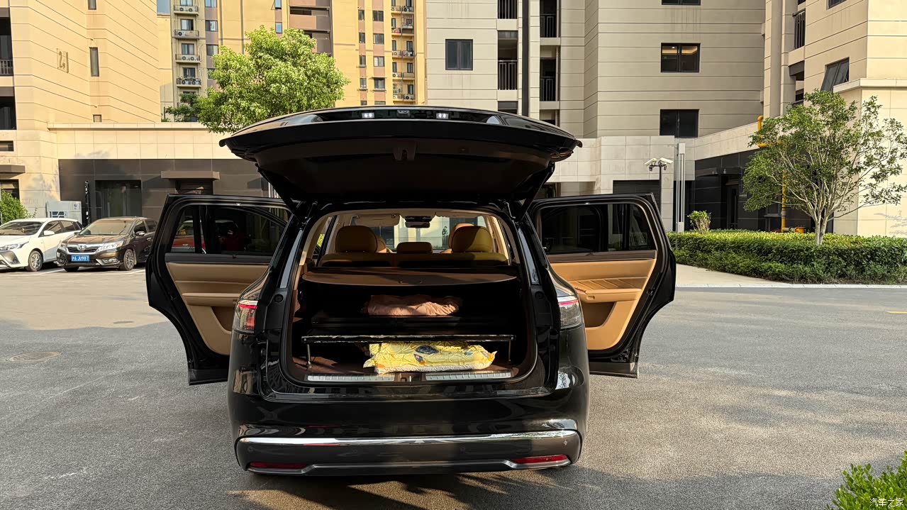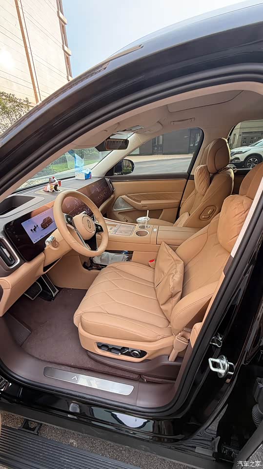 内饰虽然比较豪华但是仍然存在较大升级空间 ✅科技感拉满:三联屏+AR-HUD(驻车可观影),鸿蒙座舱4.0支持多屏联动,激光投影幕布2.0画质提升极大。 ❌材质取舍:取消M9的木纹饰板,改用镀铬+皮质拼接,新增赤茶橘等年轻配色,更居家但豪华感稍降,和m9对比落差明显。 ❌入门版无冰箱/后排屏,门板储物格塑料感较强,副驾折叠座椅舒适性不如零重力模式。 ❌内饰颜色普通,这次只有琥珀棕 白色 橘色 红色,没有特别好看的颜色,希望后续可以下放m9的望舒杏和松露棕。