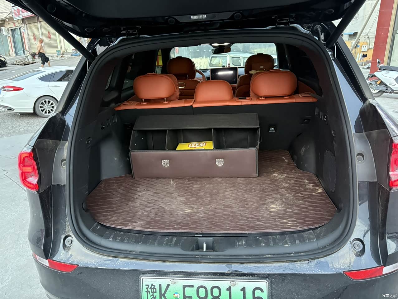 1.8米身高乘客后排腿部翘个二郎腿没任何问题,头部空间也留有非常宽的距离,我儿子甚至可在车内站立活动,从这边跑这边 后排可选配小桌板,孩子放置平板娱乐,零食或写作业都没问题, 取下副驾头枕+靠背放平,与后排贯通形成躺椅,午休或陪孩子写作业更舒适。 后备箱盖板下隐藏储物空间,分装工具、露营装备不乱放 三个字总结,空间大,大空间,