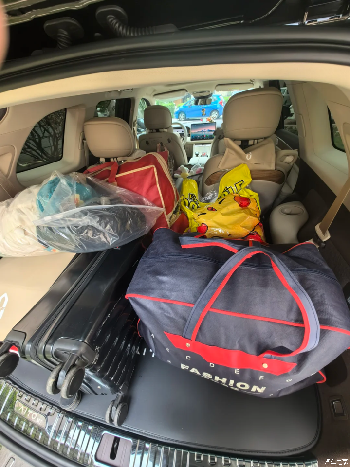 续航太顶了!周一早上充满电,开到周五下班还剩 20%,公司楼下的免费充电桩成了我的 “能量补给站”,现在每月油费直接清零,上周末带三四个同事去郊区露营,后排挤了三个 1 米 8 的大老爷们,居然没人喊 “腿麻”,后备箱塞下我的公路自行车、四人帐篷和火锅器材后,居然还能再放个车载冰箱,同事小王往里面塞了二十听可乐。