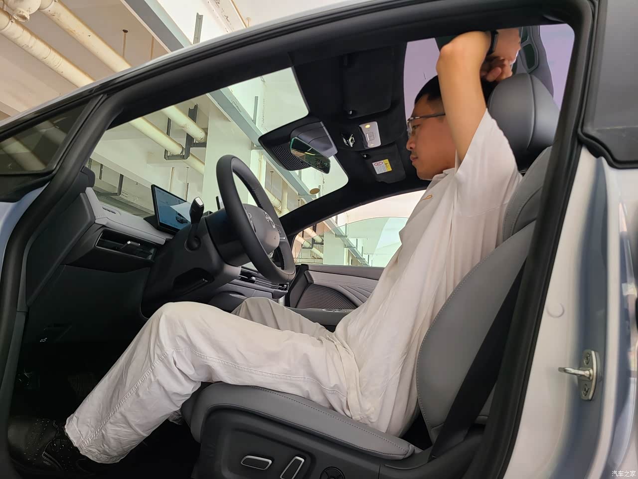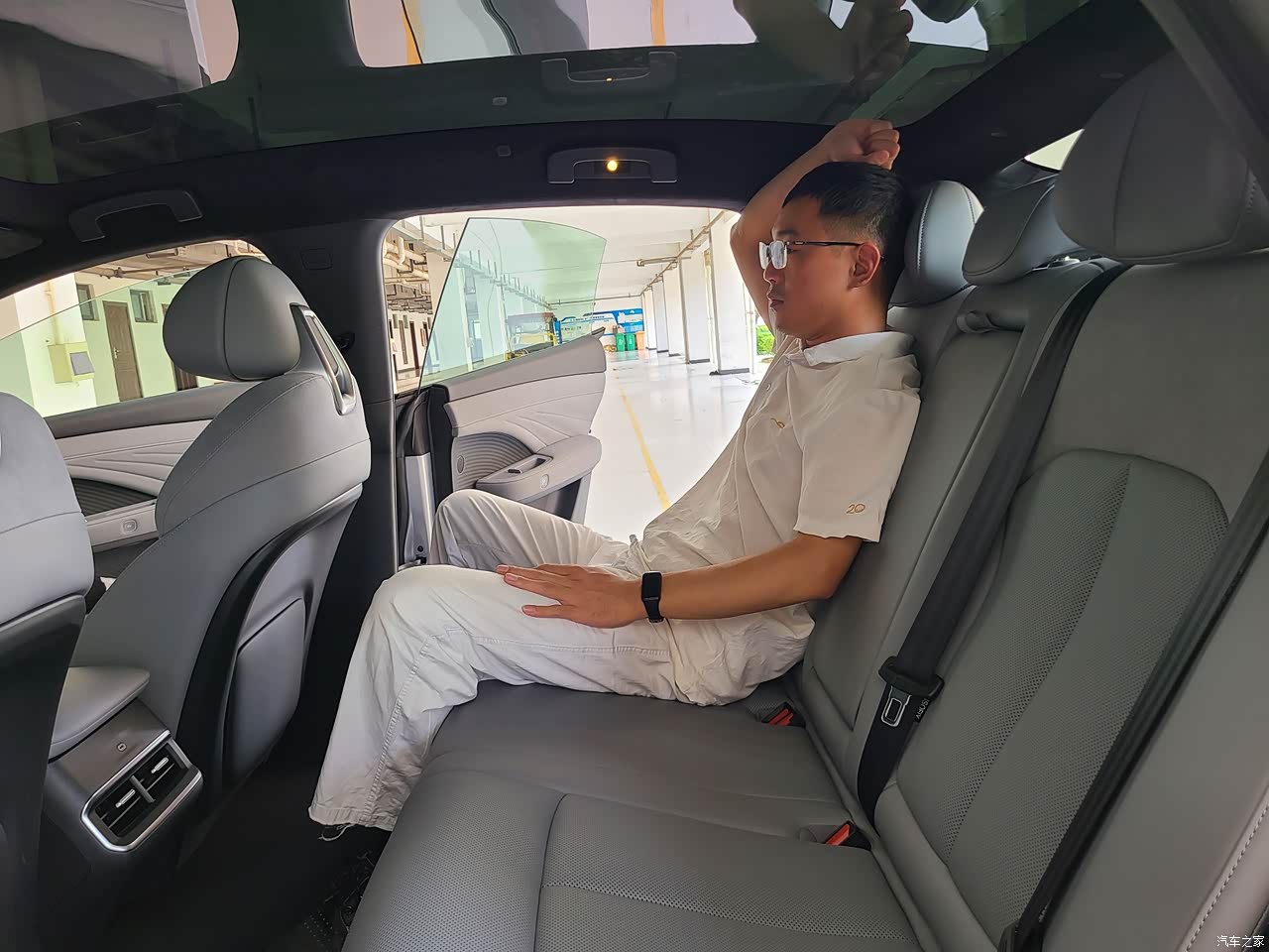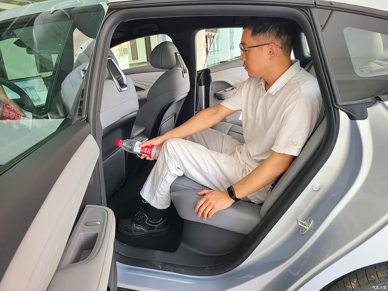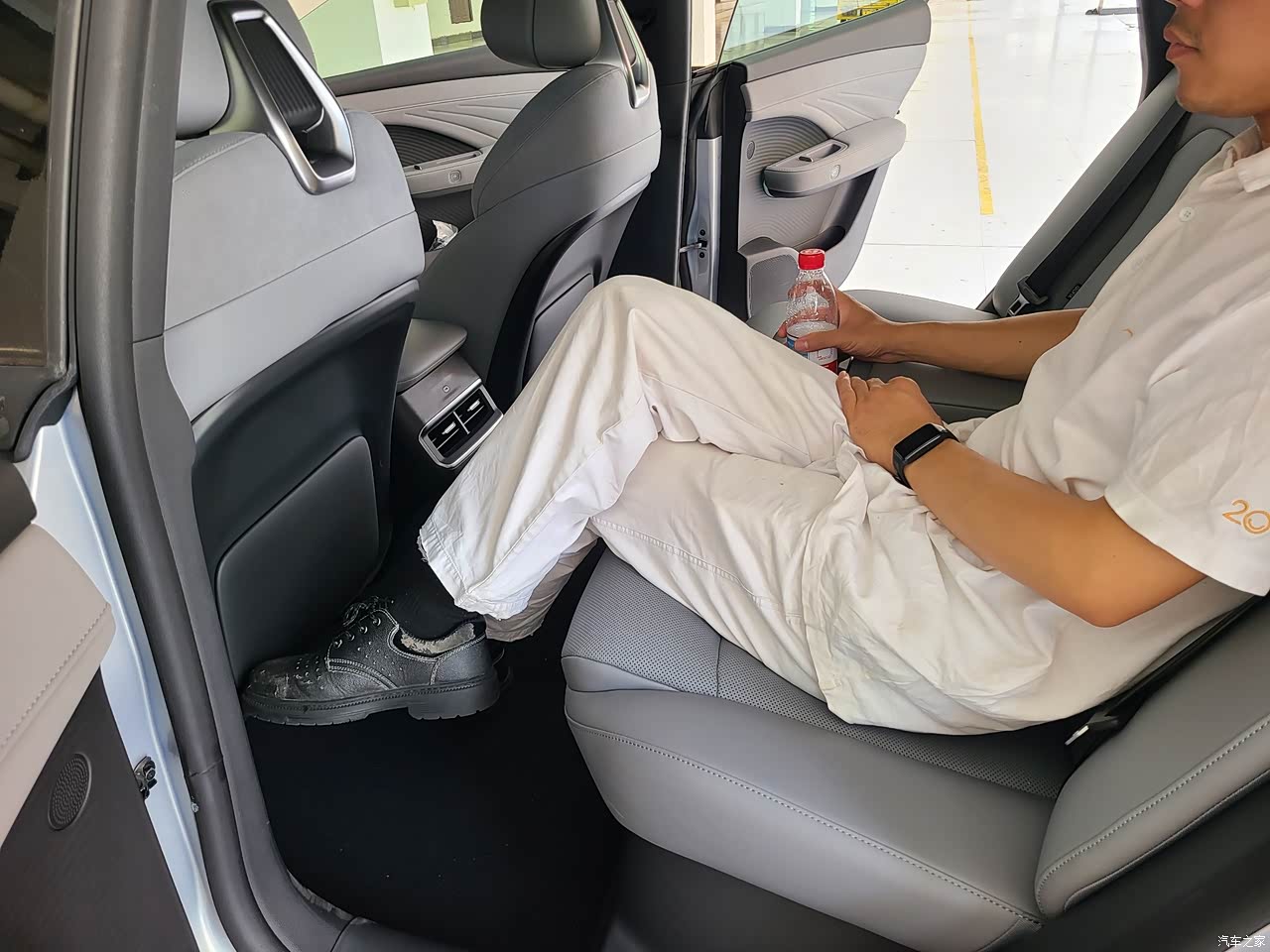 内部乘坐空间十分宽裕,本人身高177CM,体重65KG,座椅调整到合适位置后,前排头顶剩余两拳,后排头顶剩余一拳,后排腿部空间放个矿泉水瓶子都还顶不到前排座椅靠背,实测翘起二郎腿绰绰有余,一点儿都不显得局促