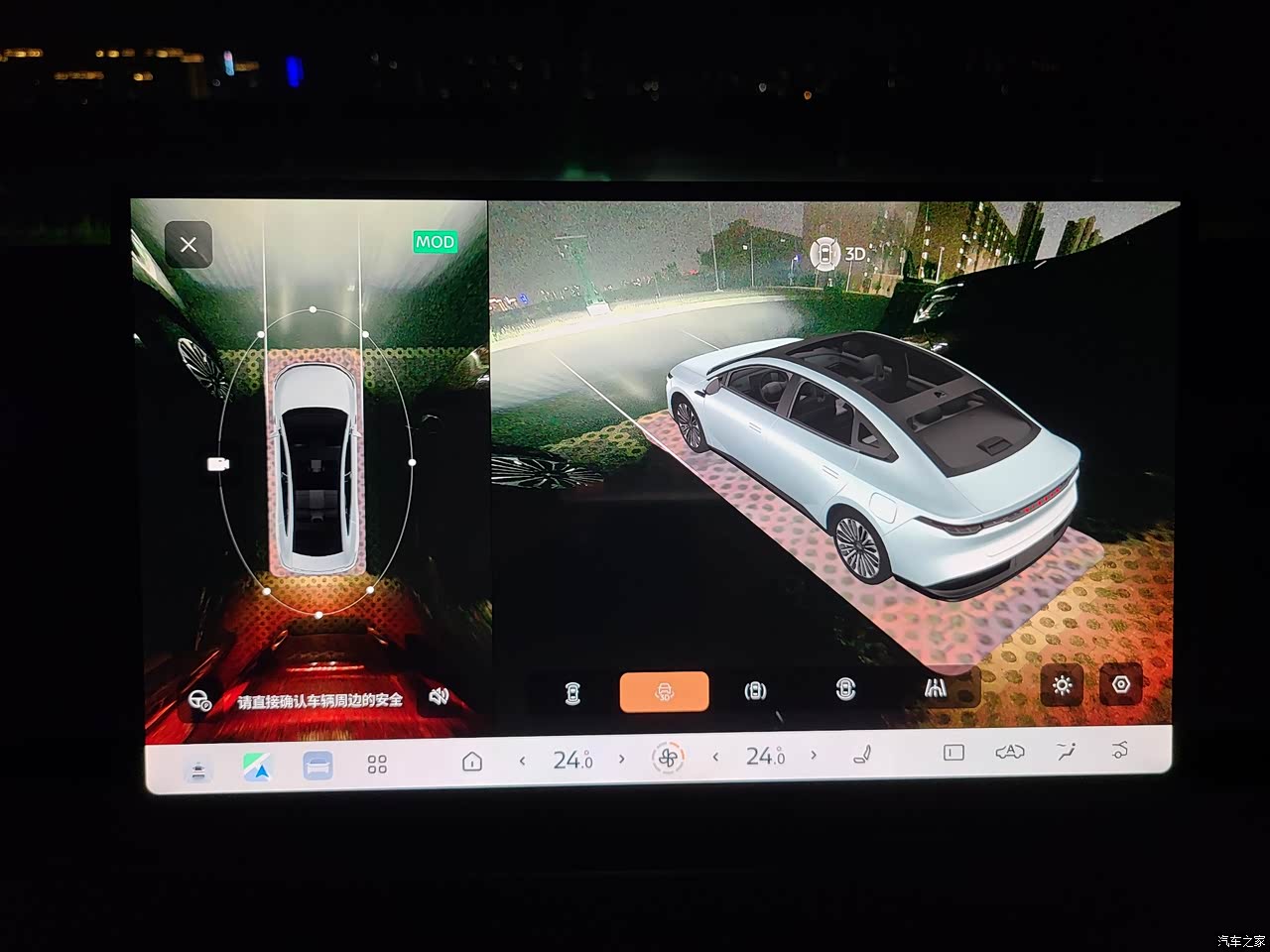 我平时上下班在市区开的最多,这车一共有7个摄像头,12个超声波雷达和3个毫米波雷达,这些摄像头和雷达加起来能360度的检测车子四周,遇到穿行的电动车和路人还能主动刹车, 360度全景影像还能进行3D显示,在挪车倒车的时候在中控屏上就能清楚的看到周围的情况,让我省心不少!