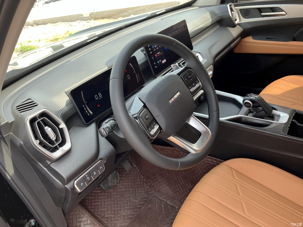 方向盘的尺寸和握感都不错,皮质也比较细腻。数字仪表盘显示清晰,信息也够用。座椅很宽大,像是坐家里的沙发,但感觉腰部的支撑性一般,我准备自己买个腰靠,这样开长途会更舒服一些。
