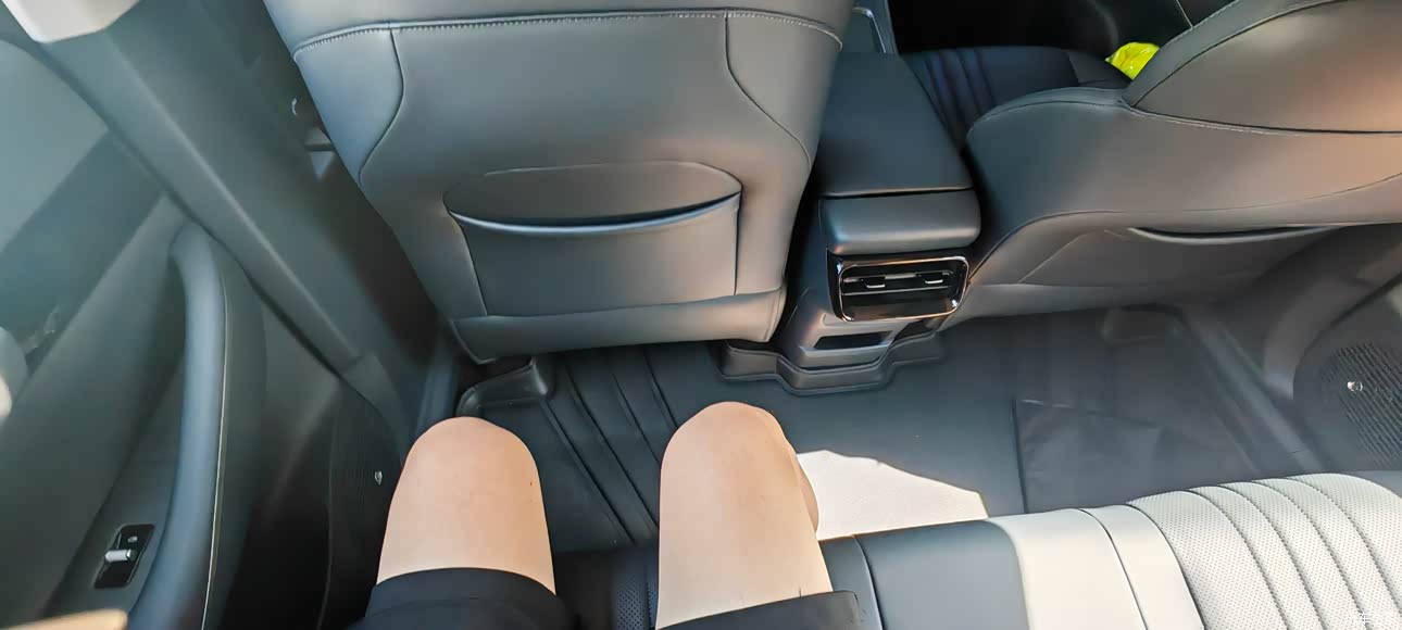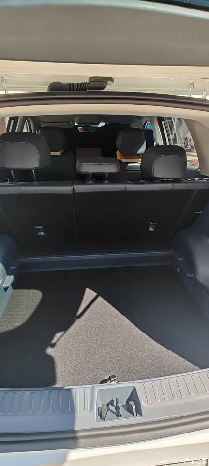 银河E5的空间是全家最满意的,1.75的个子坐驾驶位头离车顶还有很宽的空间,坐后排膝盖离前座有两个拳头以上的距离,二郎腿轻松翘起。后备箱隔板可调高低蛮实用的,隔板下的空间更是意外之喜。