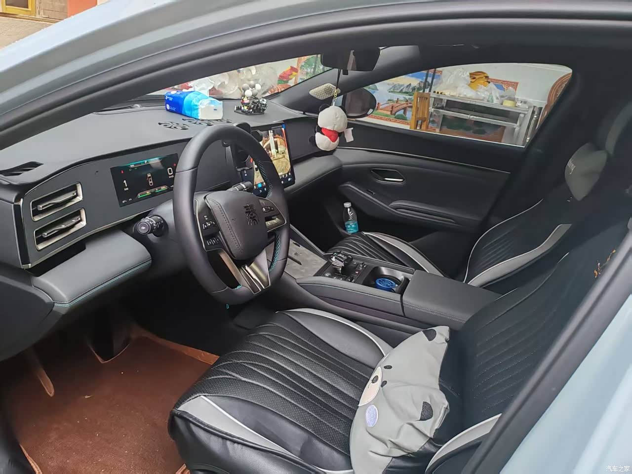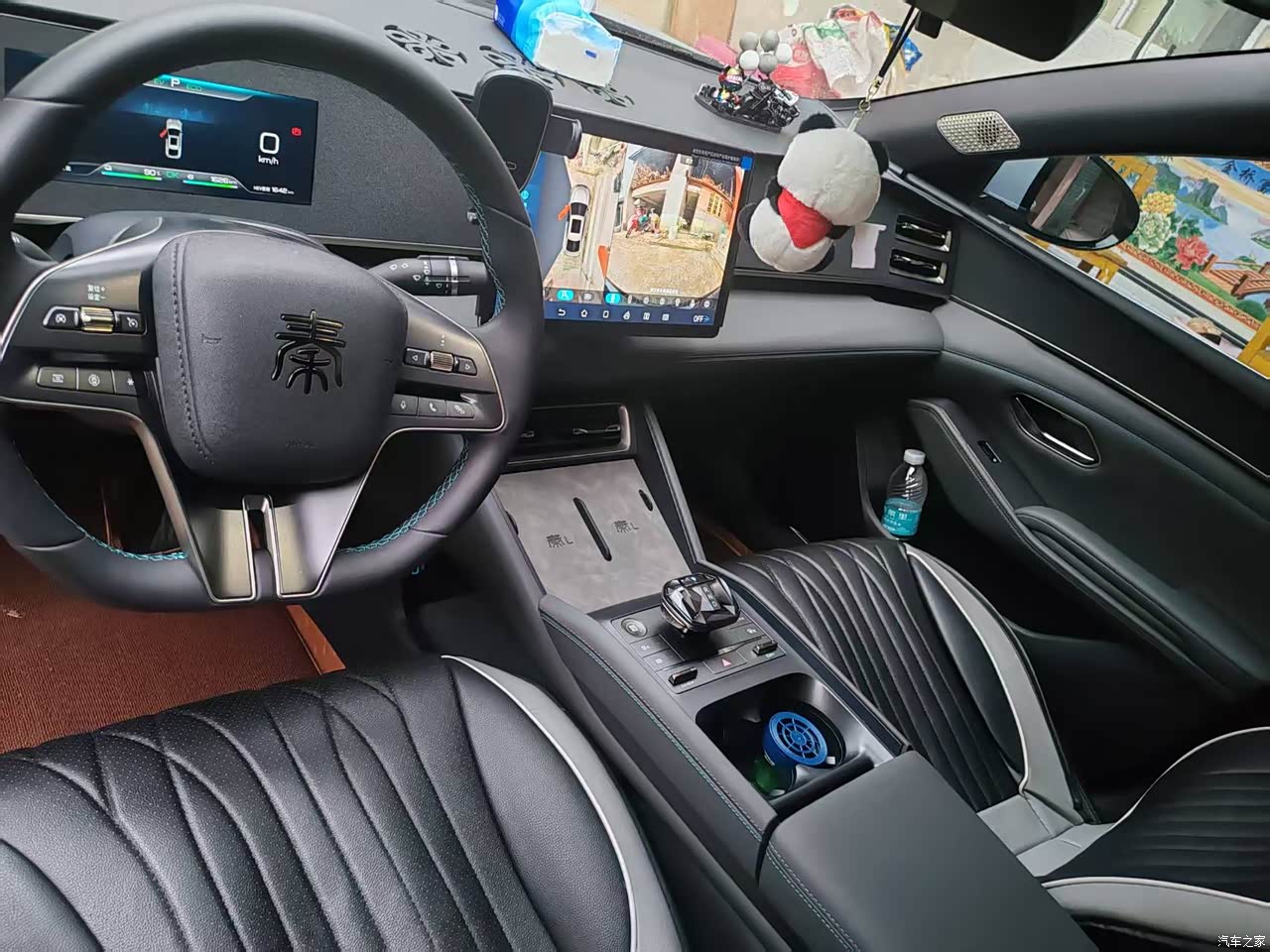 内饰么也一般,虽然比秦PLUS好点,但是比起大哥汉的用料还是差点,虽然新车内饰也没什么异味,但是没有显得高级感。