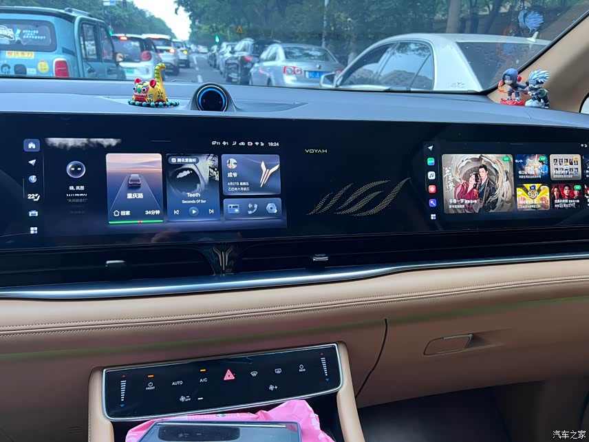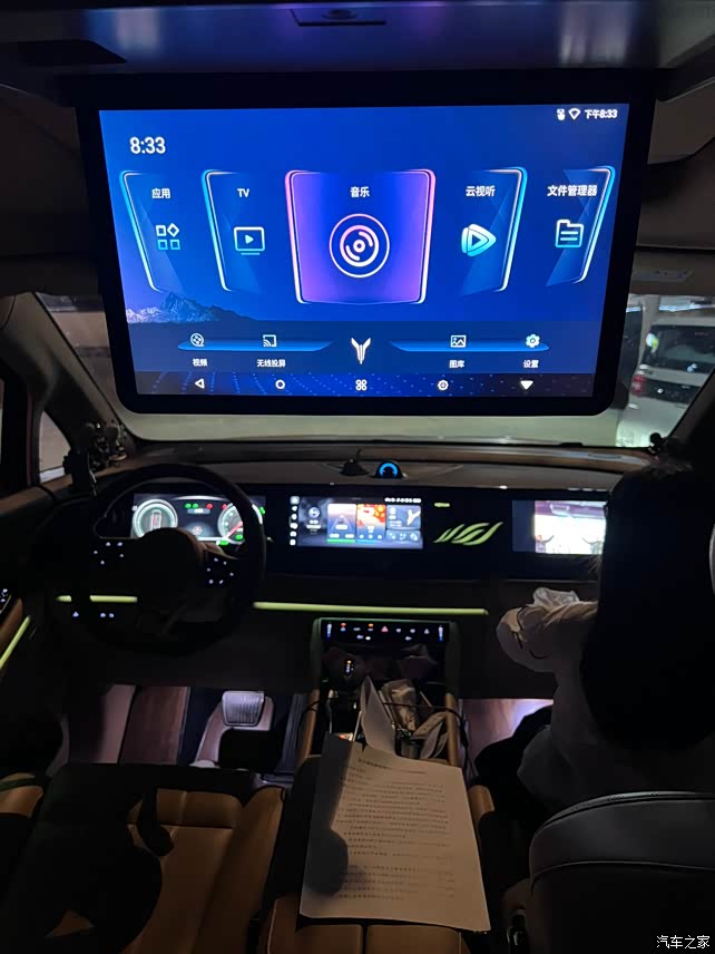 前面也提到了,用料很环保,这一点我非常满意。整体的设计采用了游艇式环抱座舱设计,有驼棕色和棉米色两种配色,我选的是驼棕色,看起来很有质感,也比较耐脏。1.4米的超长联屏非常吸睛,显示很清晰,操作也很流畅,基本上常用的功能都有,像导航、多媒体、车辆设置这些,反应速度都很快,没有出现过卡顿的情况。车内还有64色氛围灯,晚上开车的时候,把氛围灯打开,氛围感直接拉满。座椅的包裹性和舒适性也都不错,前排座椅有加热和通风功能,夏天不怕热,冬天不怕冷,非常实用。不过,这个内饰也有一些小瑕疵,比如说空调面板虽然设计得很漂亮,但是特别容易留下指纹,看着有点脏脏的,得经常擦才行。还有就是三块屏幕之间的黑边比较明显,影响了整体的美观度。