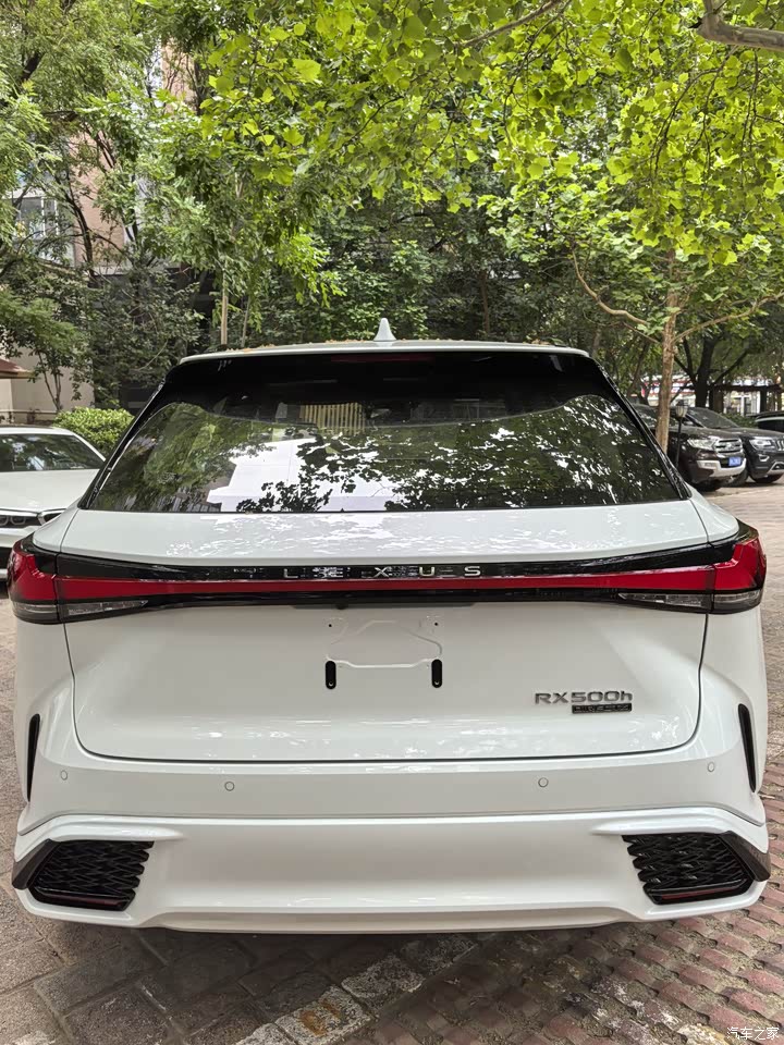 RX500h专属颜色晶亮白,是真的白!尤其贴了车衣后,白亮白亮的,这代RX比上一代更润了,柔了,没那么多棱角了,但是气势反而更足了,和车更宽了有关系,尤其是RX500h,全车运动套件点缀的太完美了,恰到好处,不夸张。